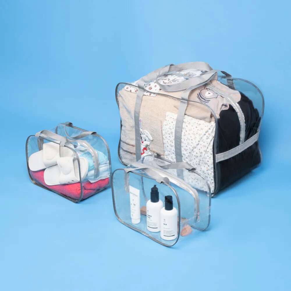 Купить Сумка в роддом, "здравствуй, мама!", мега большая XХL и 2 средние, цвет прозрачный серый, набор из 3 шт.