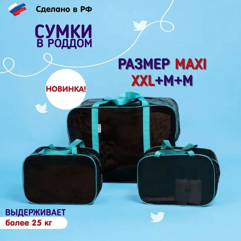 СохранитьСумка в роддом, "здравствуй, мама!", мега большая XХL и 2 средние, цвет ночной бриз, набор из 3 шт. интересное: