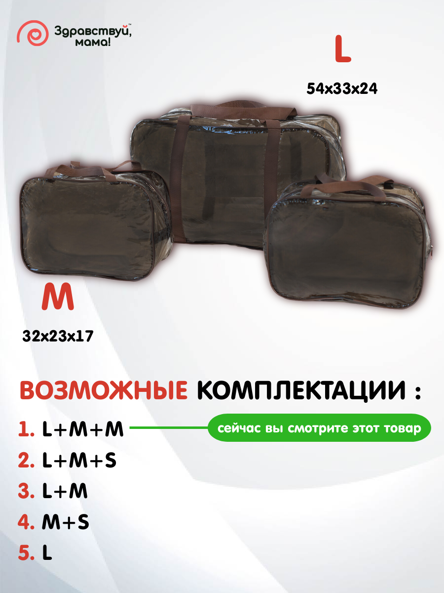 Сумка в роддом, "здравствуй, мама!", мега большая XХL и 2 средние, цвет прозрачный серый, набор из 3 шт.