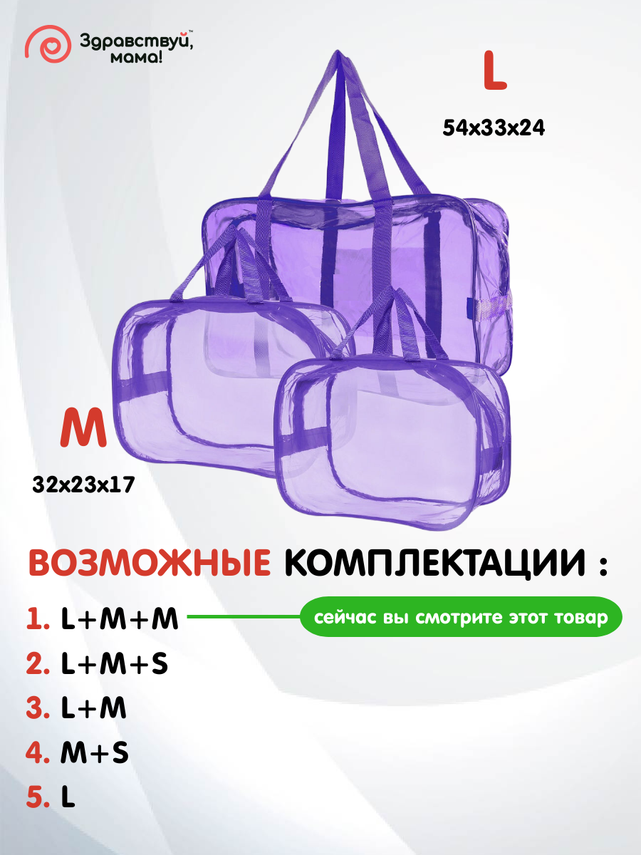 Усиленная сумка в роддом, готовая для мамы и малыша "здравствуй, мама!", цвет фиолетовый, набор из 3 шт.