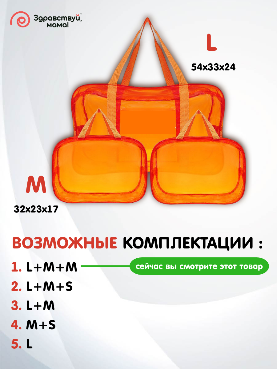 Сумка в роддом, "здравствуй, мама!", мега большая XХL и 2 средние, цвет прозрачный серый, набор из 3 шт.