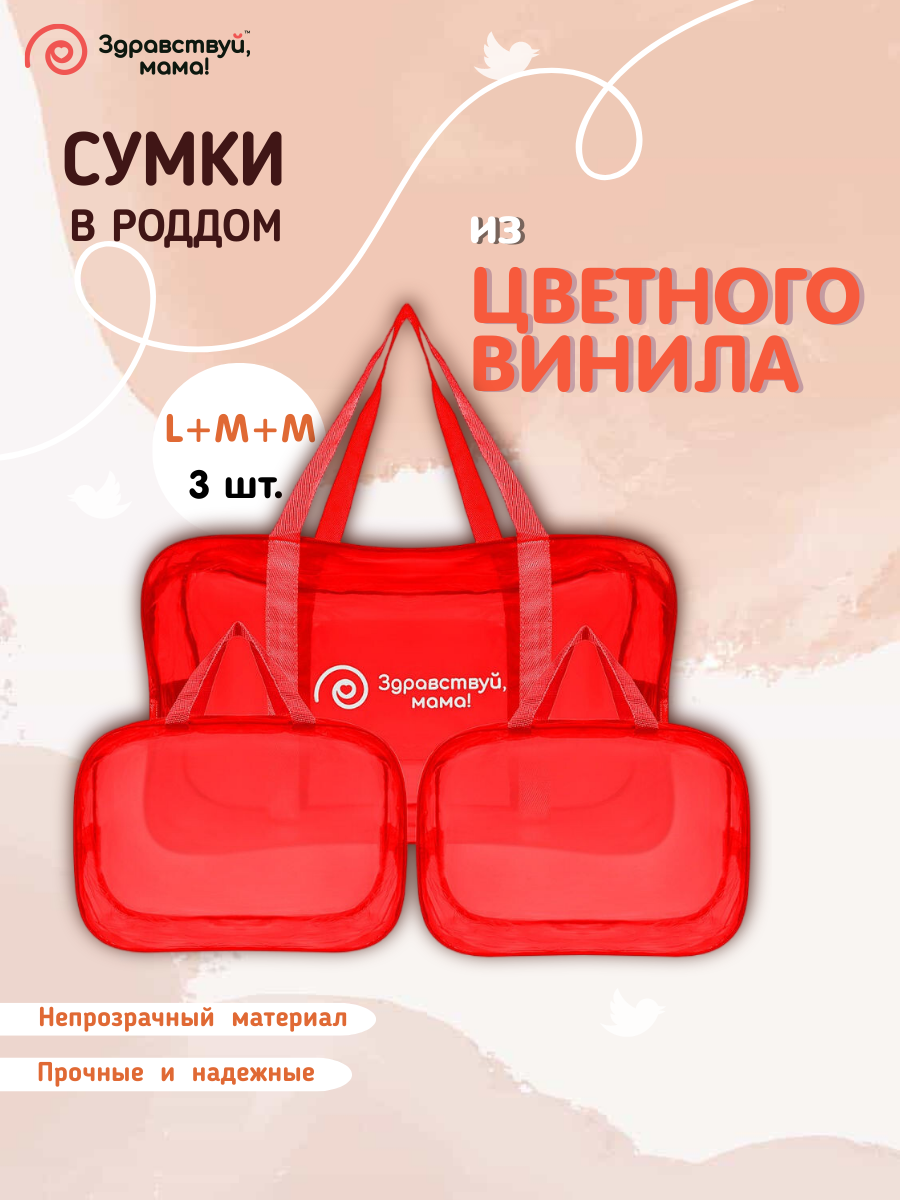 Усиленная сумка в роддом, готовая для мамы и малыша "здравствуй, мама!", цвет красный, набор из 3 шт.