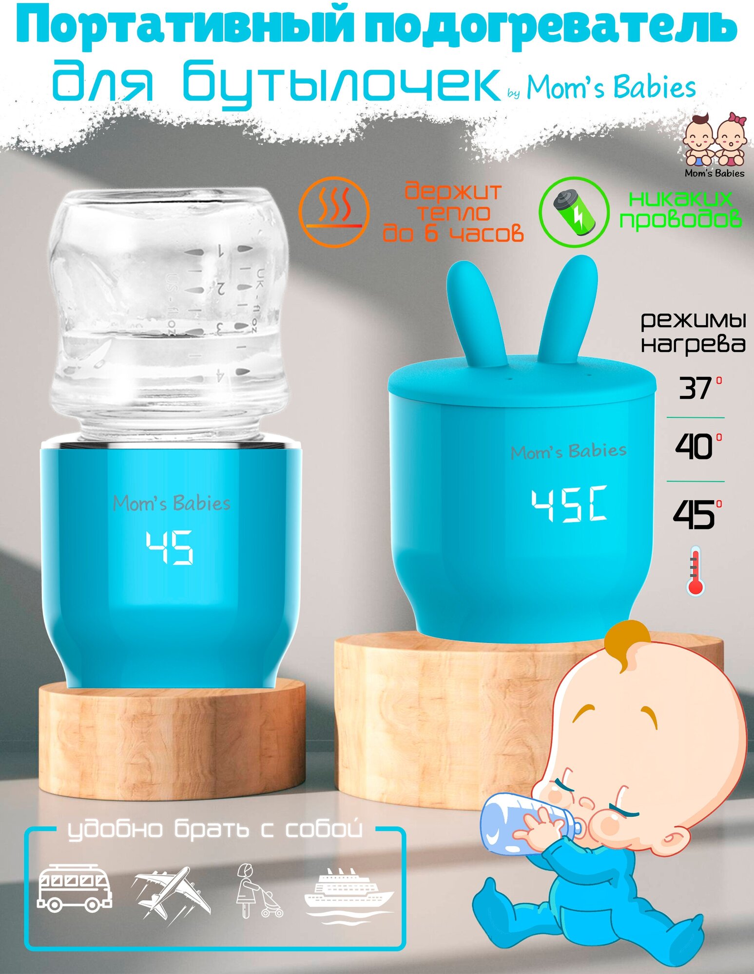 Портативный подогреватель для бутылочек переносной by Mom's Babies голубой интересное: