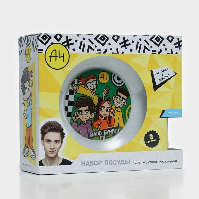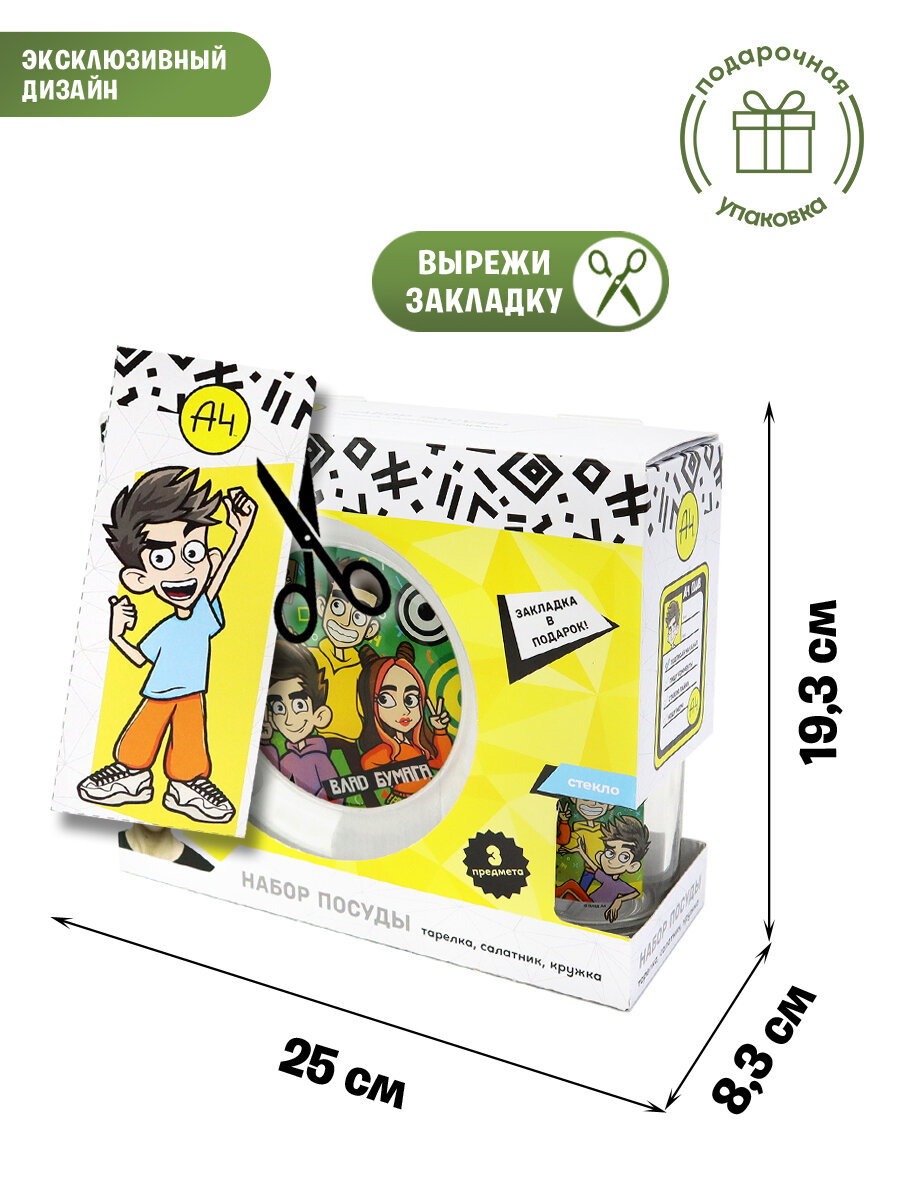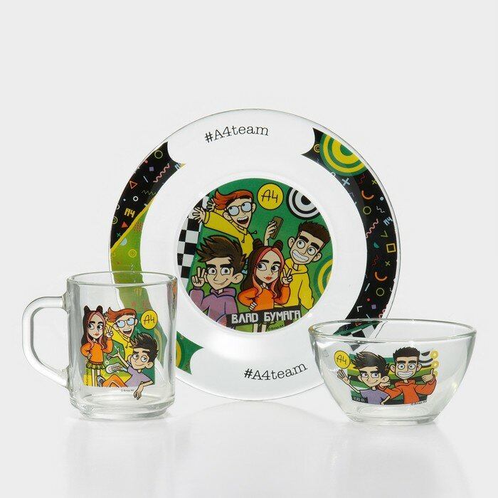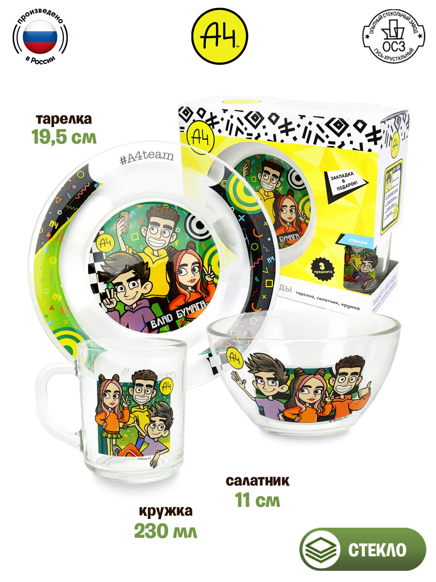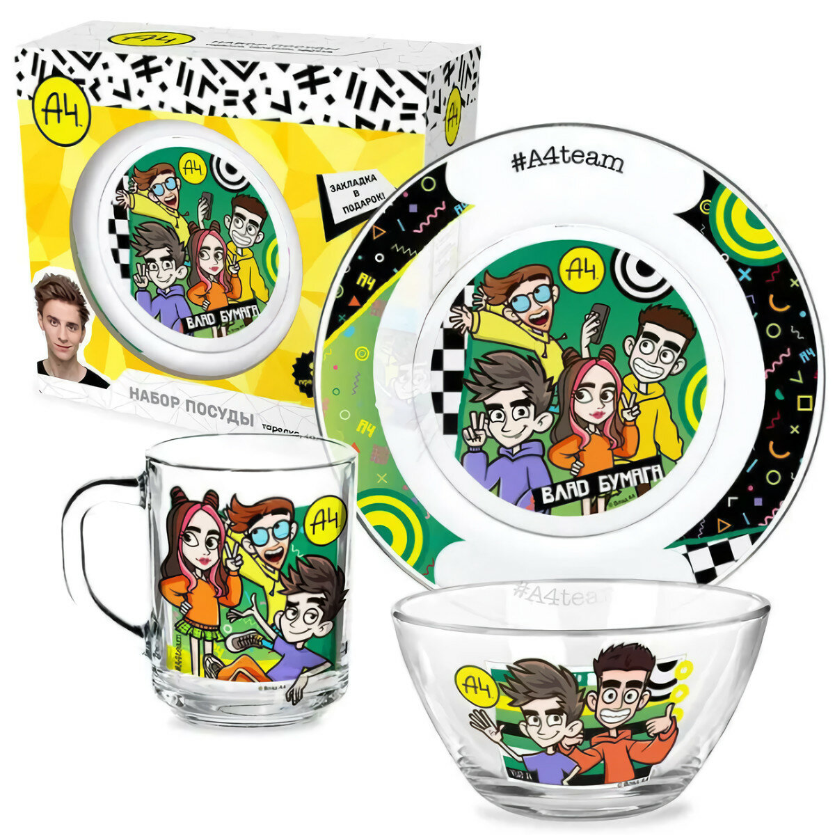ND PLAY Набор стеклянной посуды «Влад А4. Влад и компания», 3 предмета: кружка, тарелка, салатник интересное:
