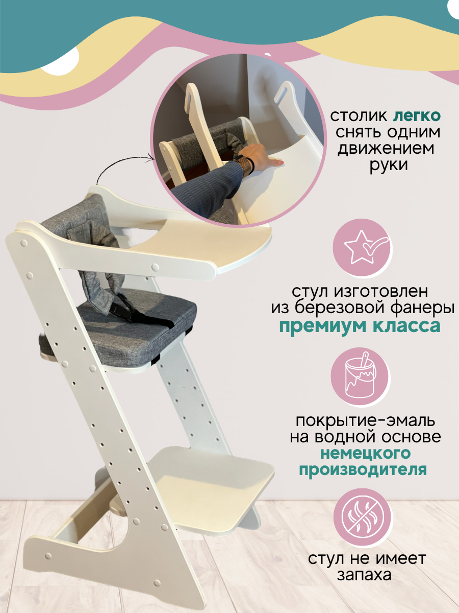 Растущий стул Панда со столиком детский с подушками серыми с ремнями интересное: