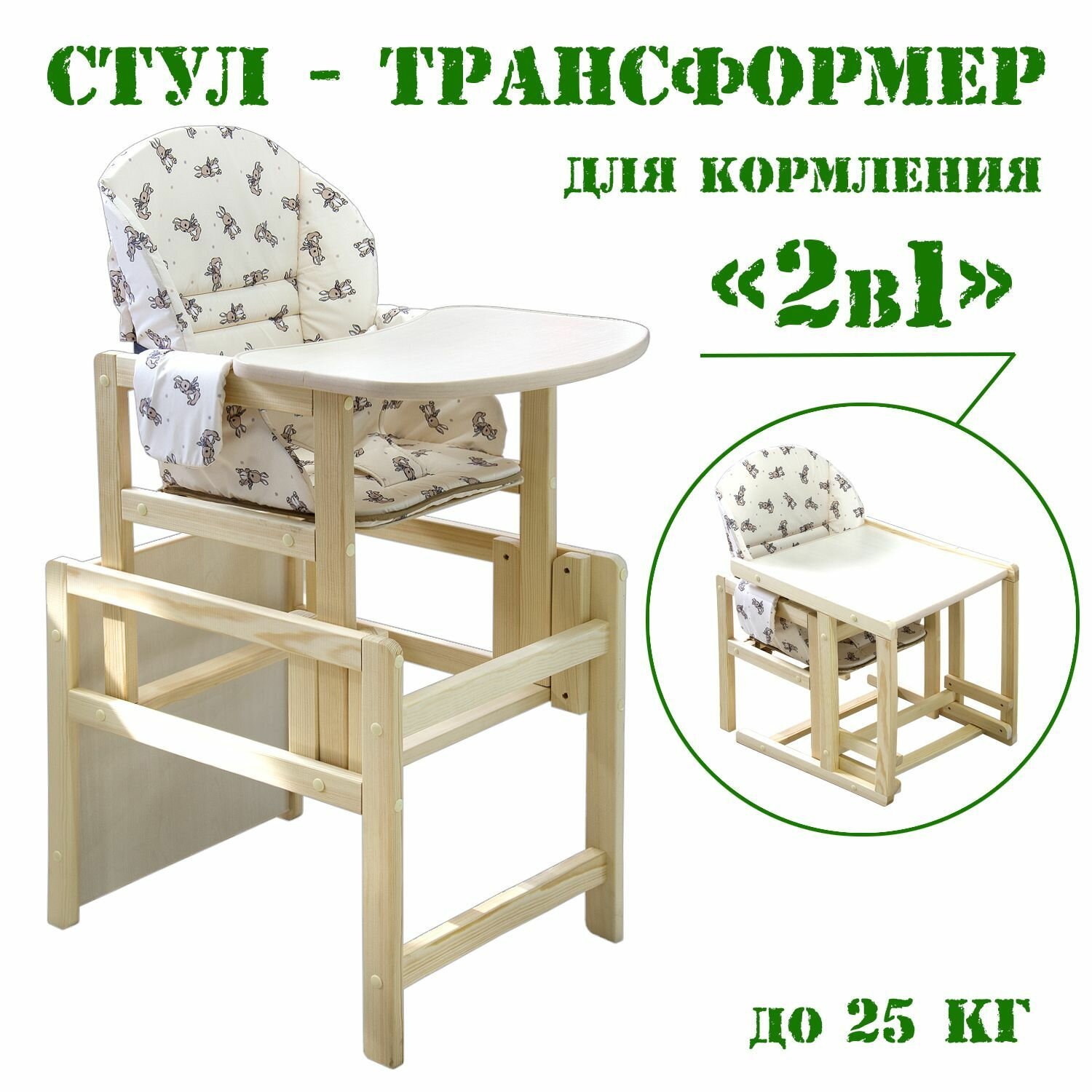 Стульчик для кормления детский трансформер со столом (Зайки) интересное: