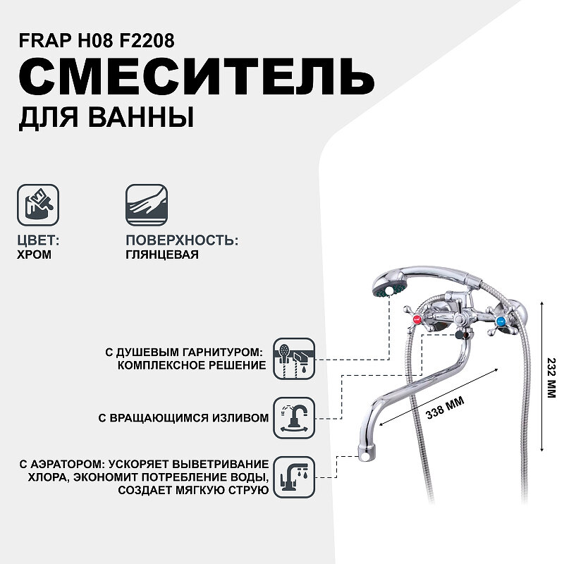 Смеситель для ванны FRAP H08 F2208
