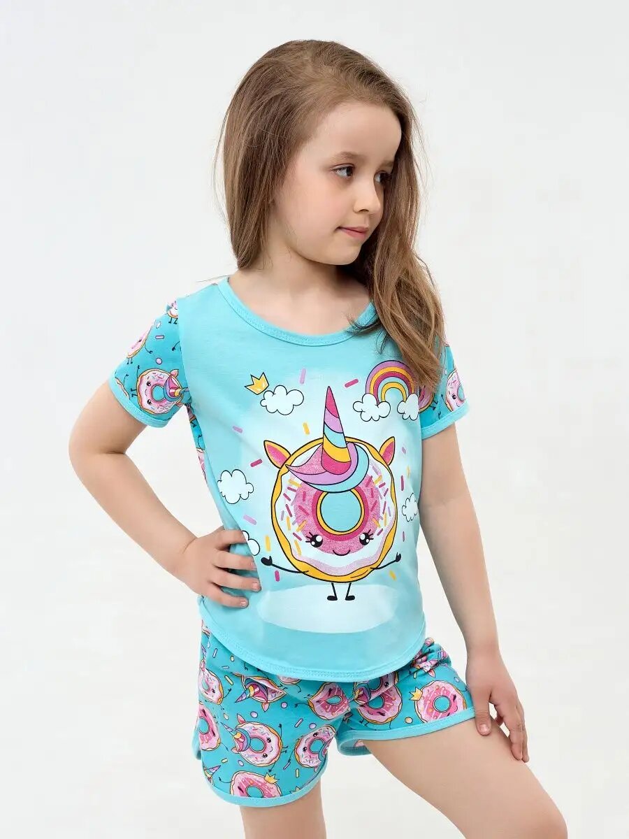 Детская пижама с шортами, Дети в Цвете, голубой, размер 146 интересное:
