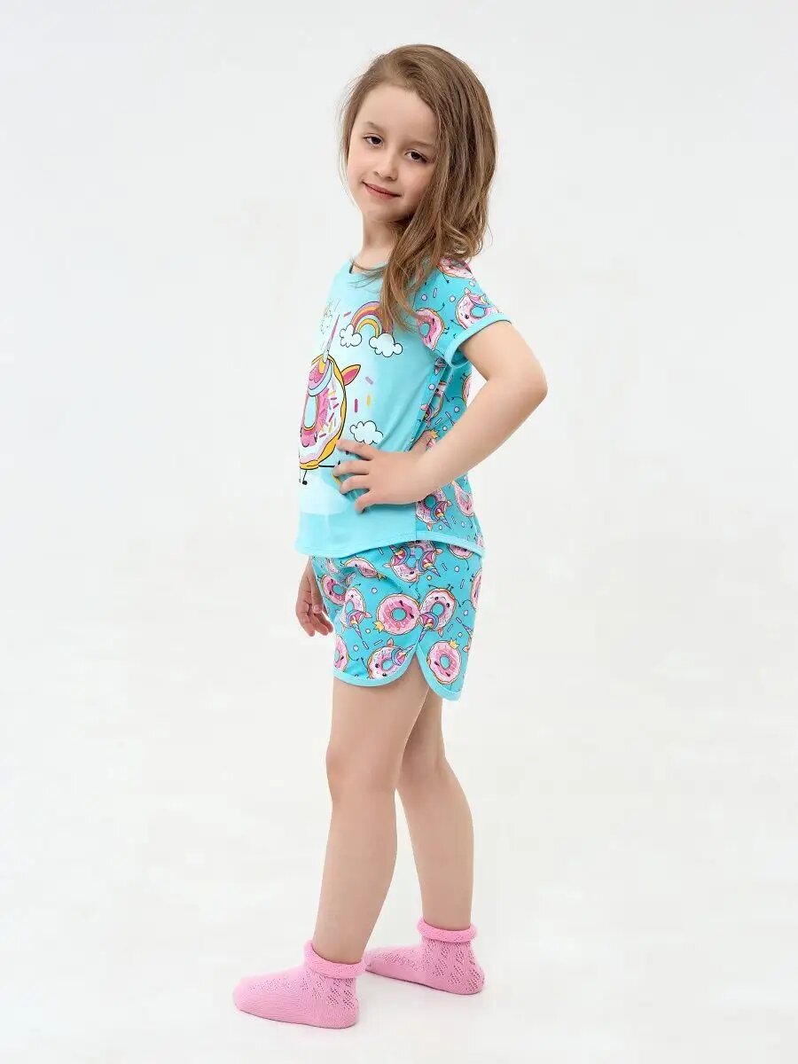 Детская пижама с шортами, Дети в Цвете, голубой, размер 140 интересное: