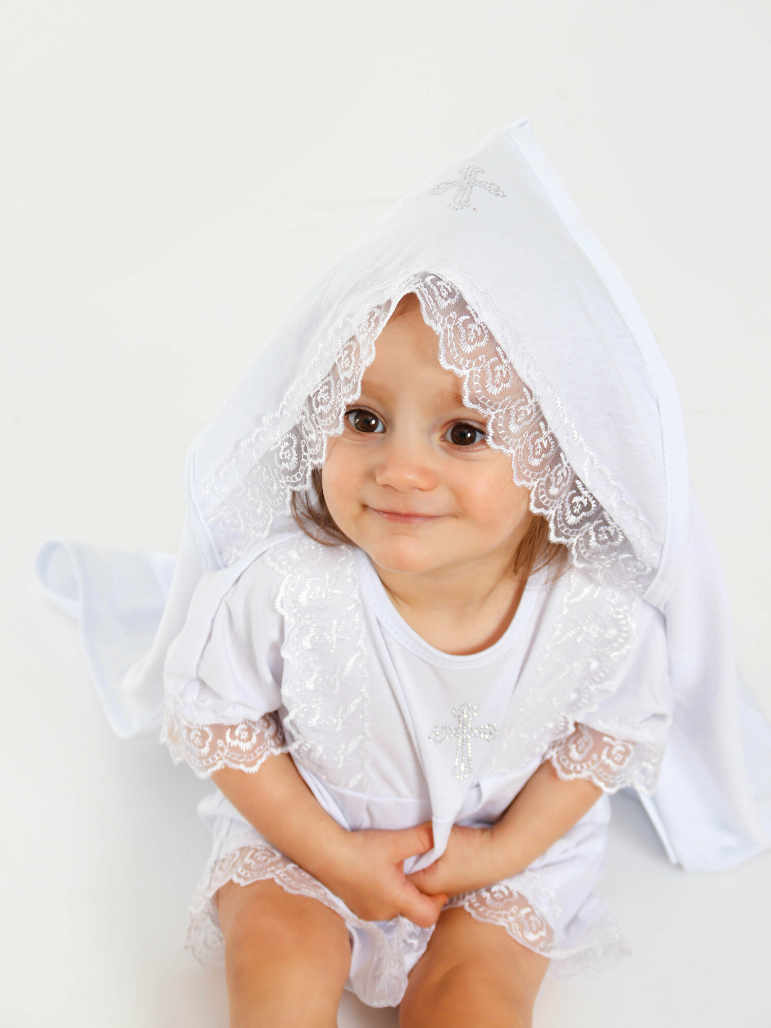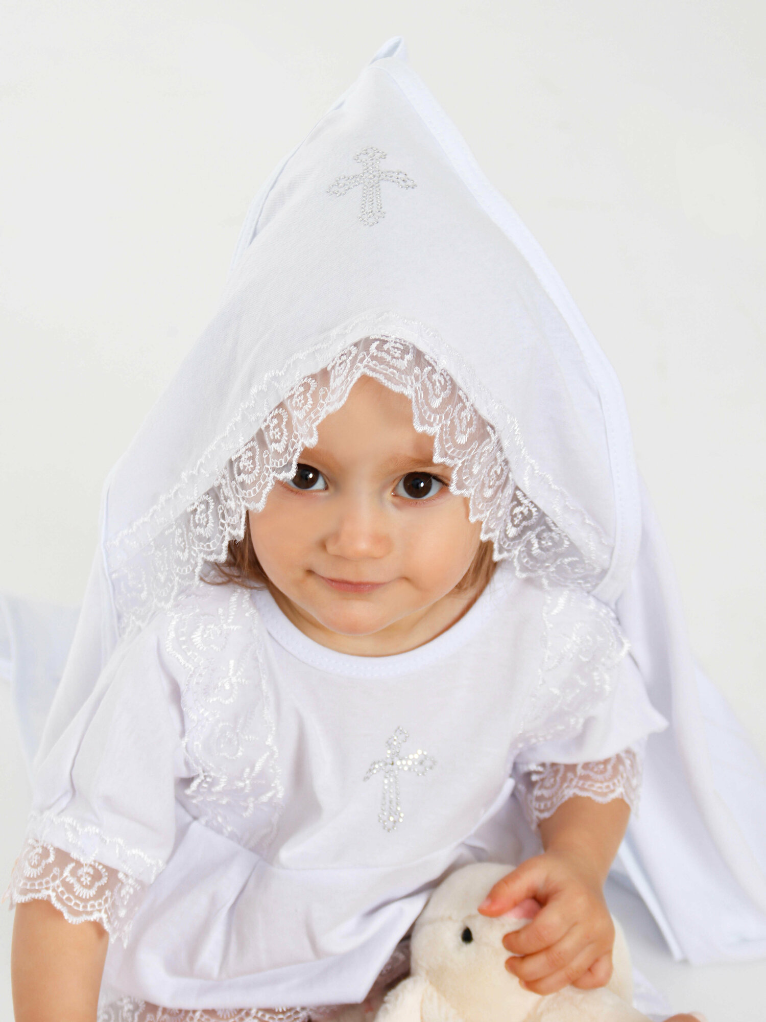 Купить Крестильная пеленка-полотенце с капюшоном, 90х90 см.