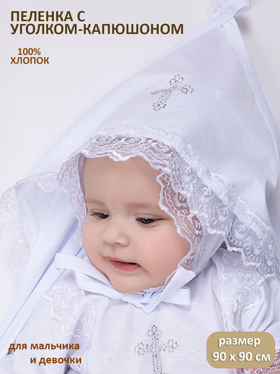 Крестильная пеленка-полотенце с капюшоном, 90х90 см. интересное: