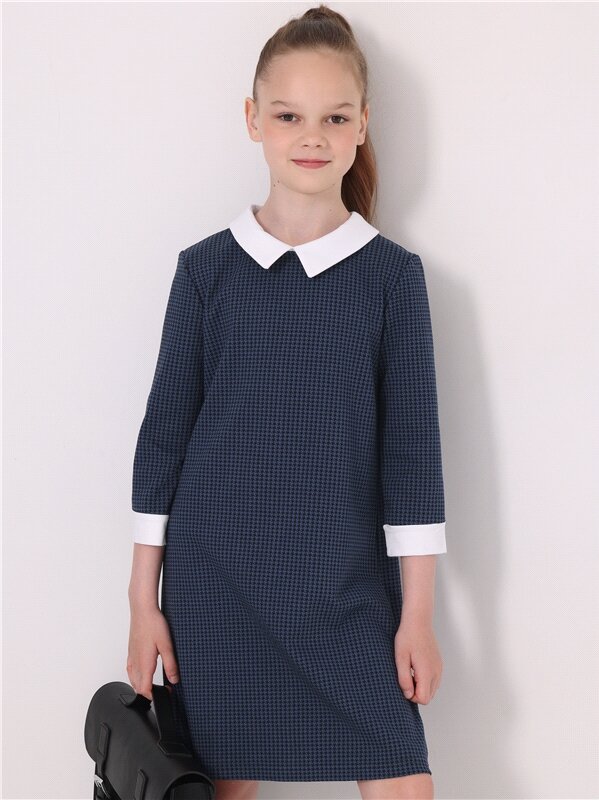 Платье для девочки школьное синее трикотажное с воротником Апрель 1ДПД868858/989/2151/*/1852/*/*/* синий,белый 76-146