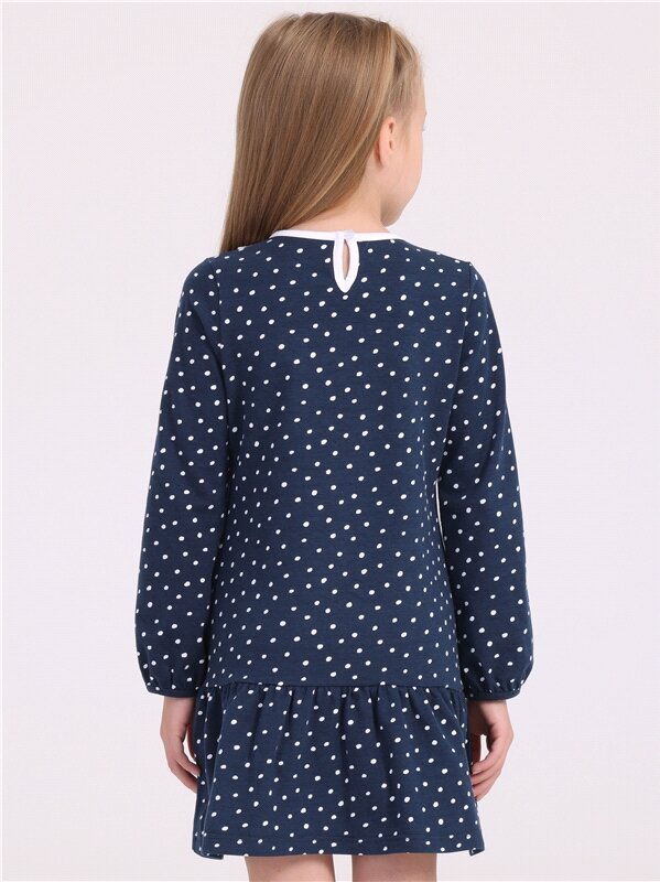 Платье для девочки школьное синее в горошек хлопок Апрель 1ДПД3538804н/989/*/4140/*/*/*/*/1 синий,белый 72-140