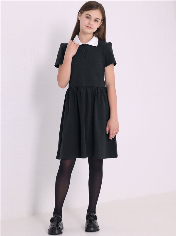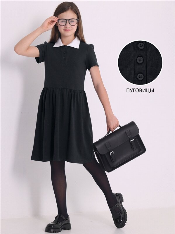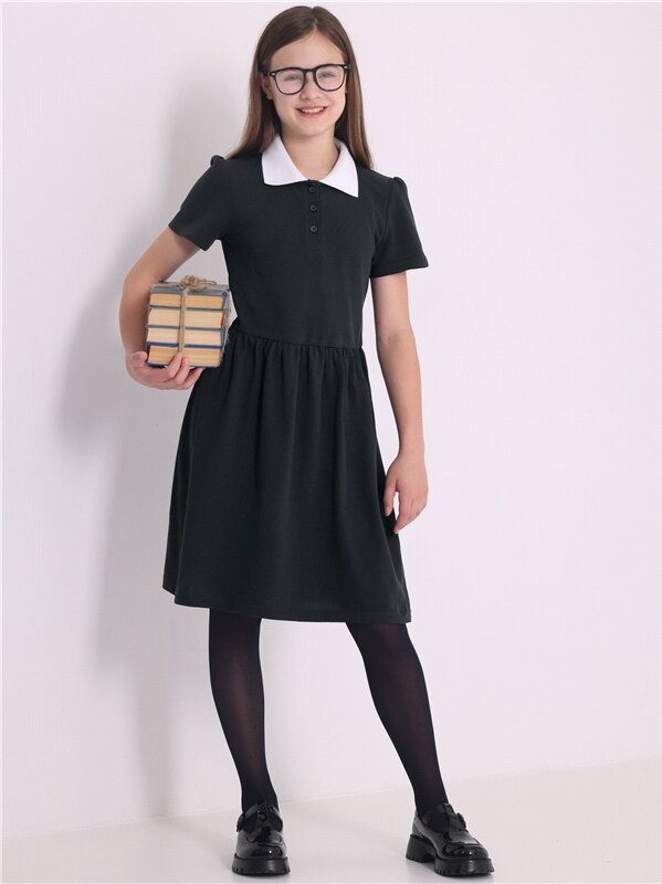 Платье черное с воротником поло школьная форма Апрель 1ДПК4306090/1386/600/*/*/*/*/* черный,белый 84-158