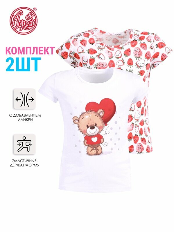 Футболка для девочки с принтом комплект 2 шт. хлопок 100% Апрель 2ДДФК5731001н/1315/*/5365/3153/*/*/* белый,розовый,красный,коричневый 54-104