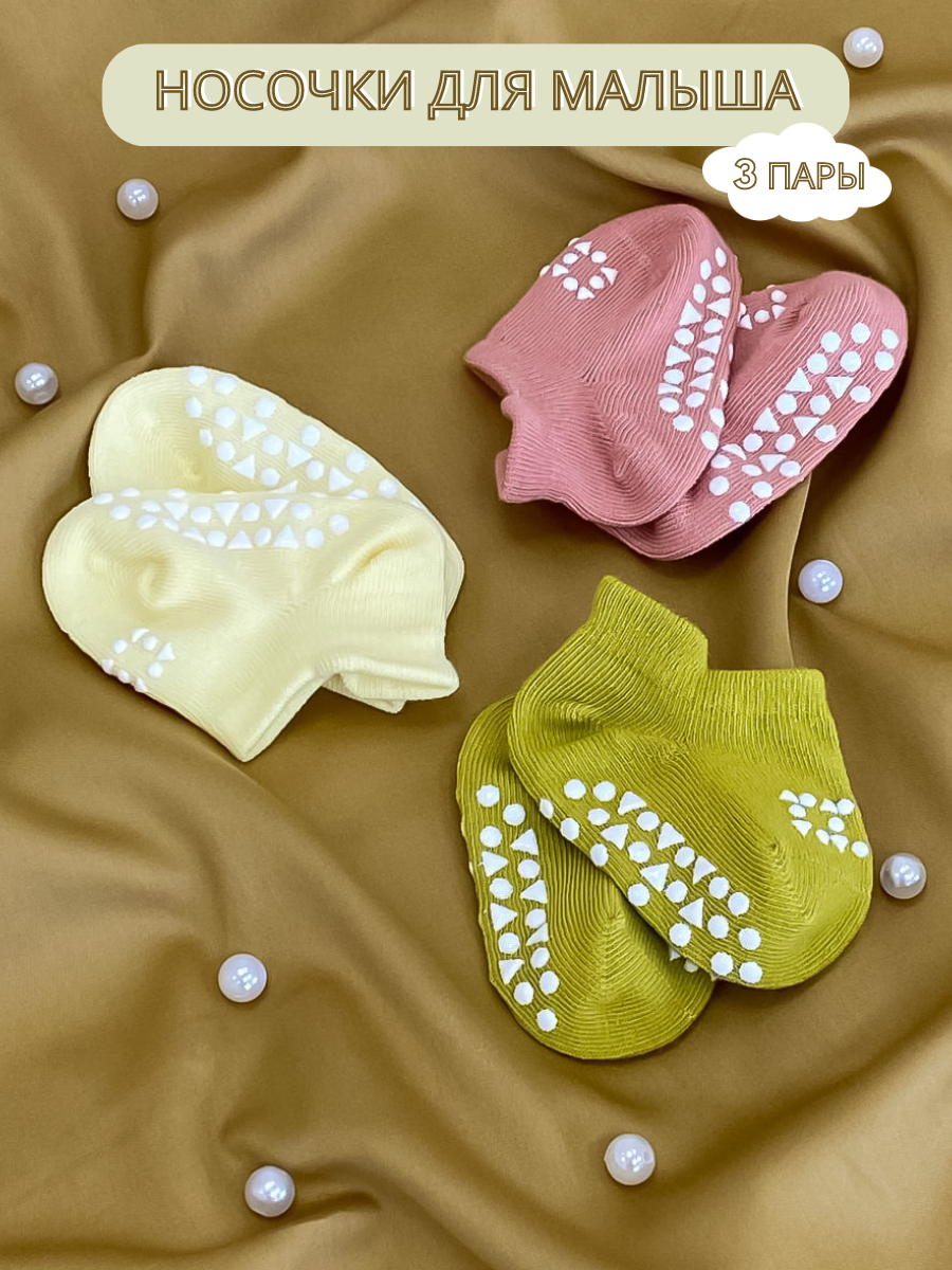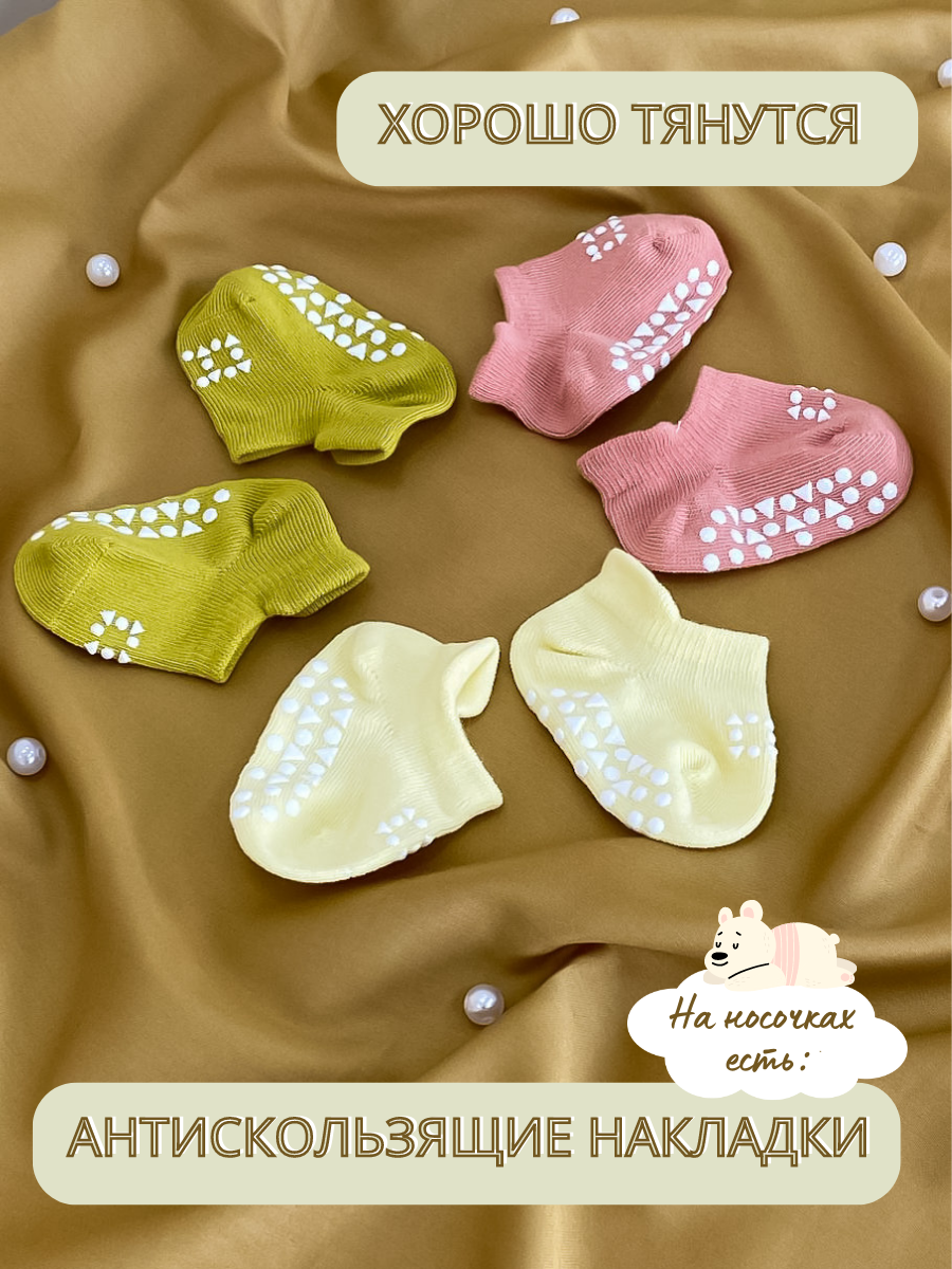 Носочки для малышей комплект 3 пары с 3 до 5 лет розовый желтый зеленый