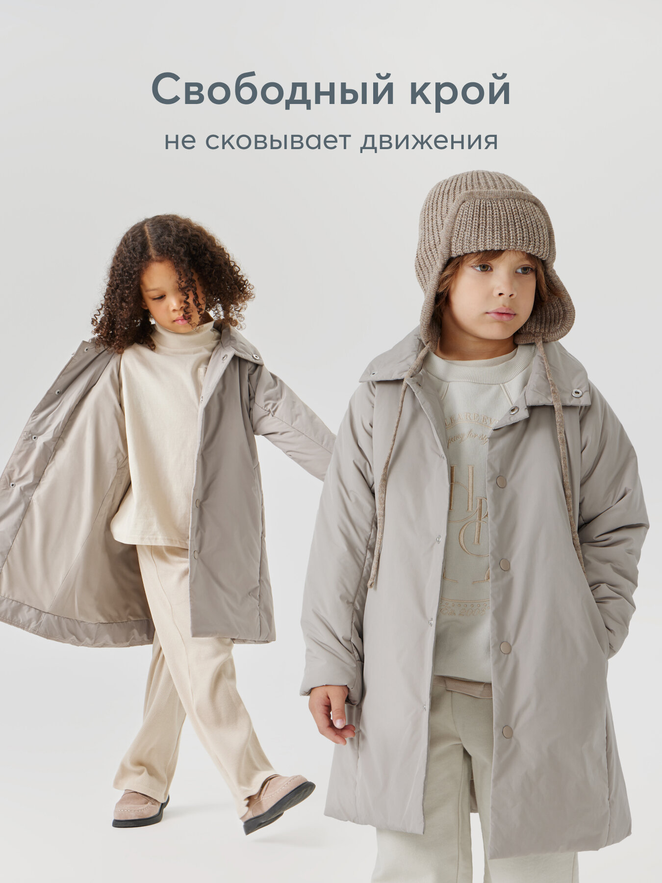 Сохранить89105-1, Пальто детское Happy Baby утепленное, серый, размер 128-134 интересное: