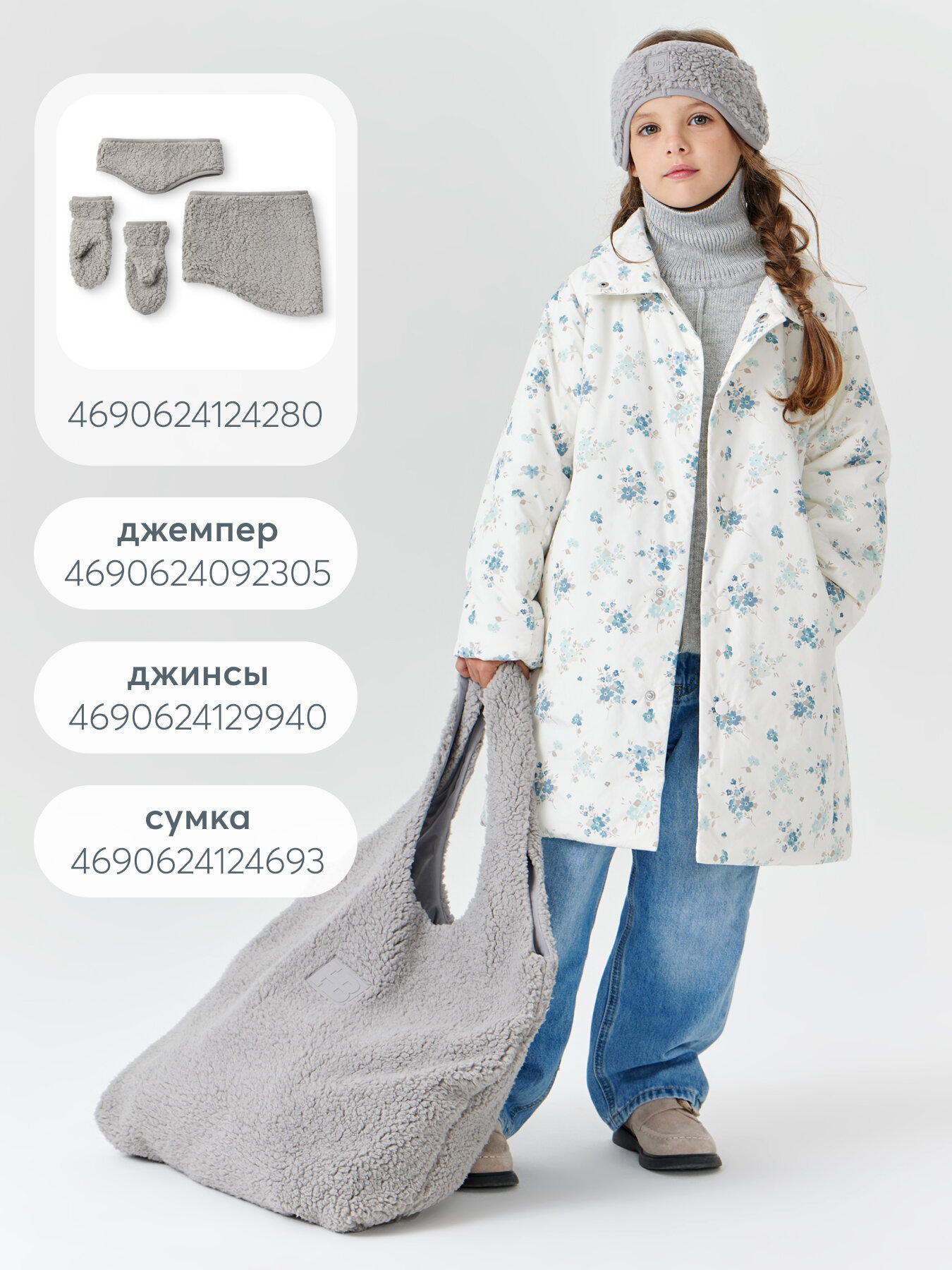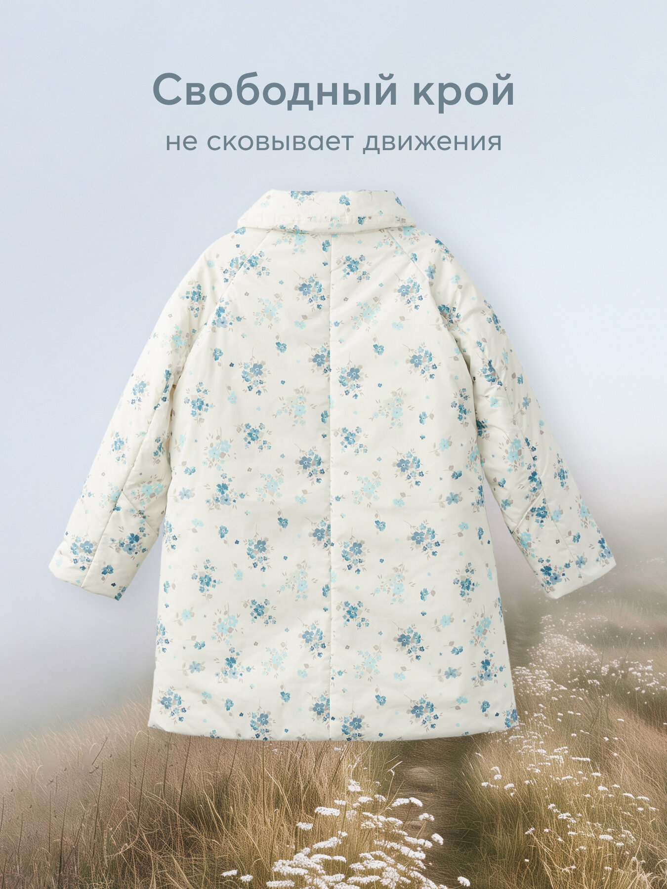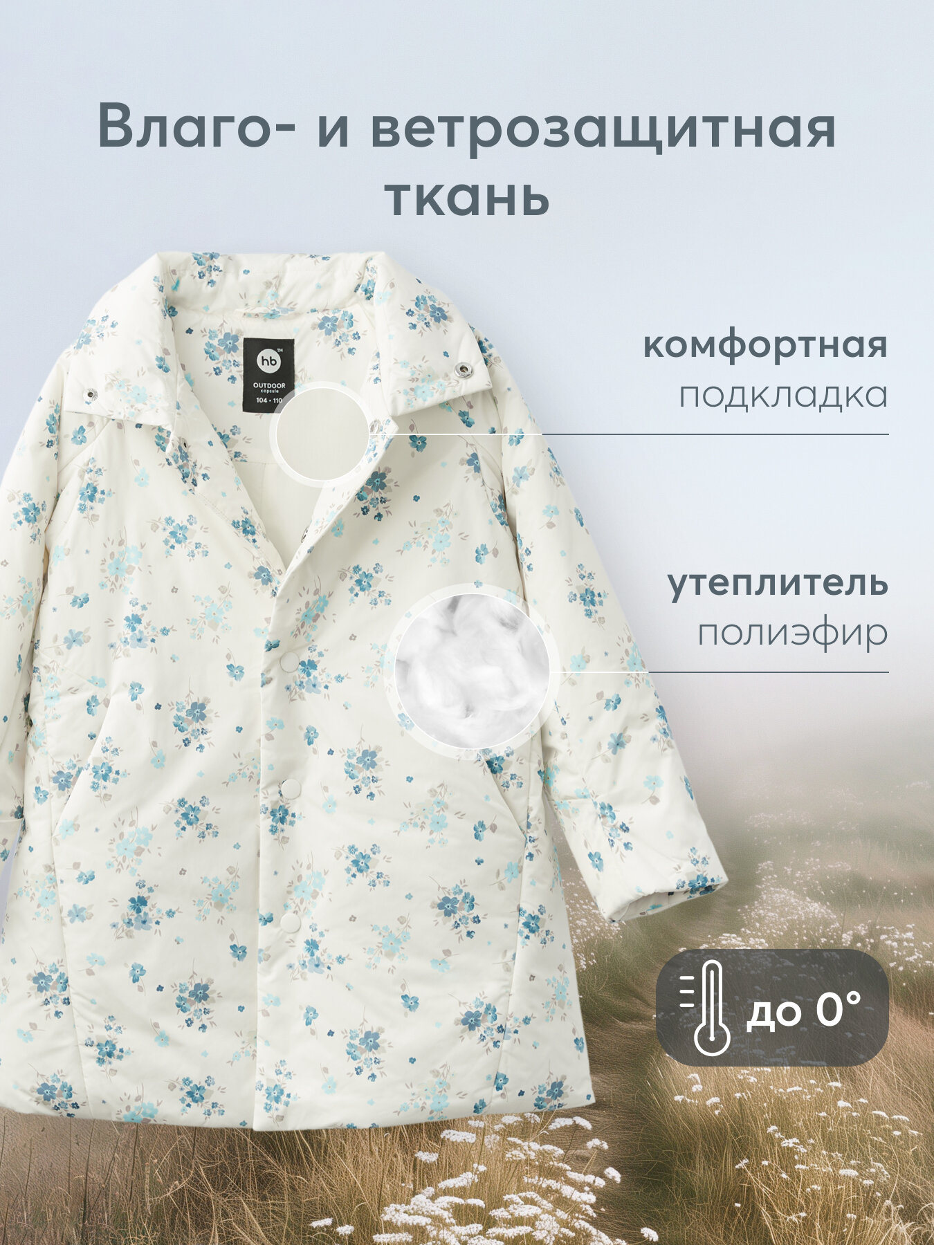 Сохранить89105-1, Пальто детское Happy Baby утепленное, молочный с цветами, размер 128-134 интересное: