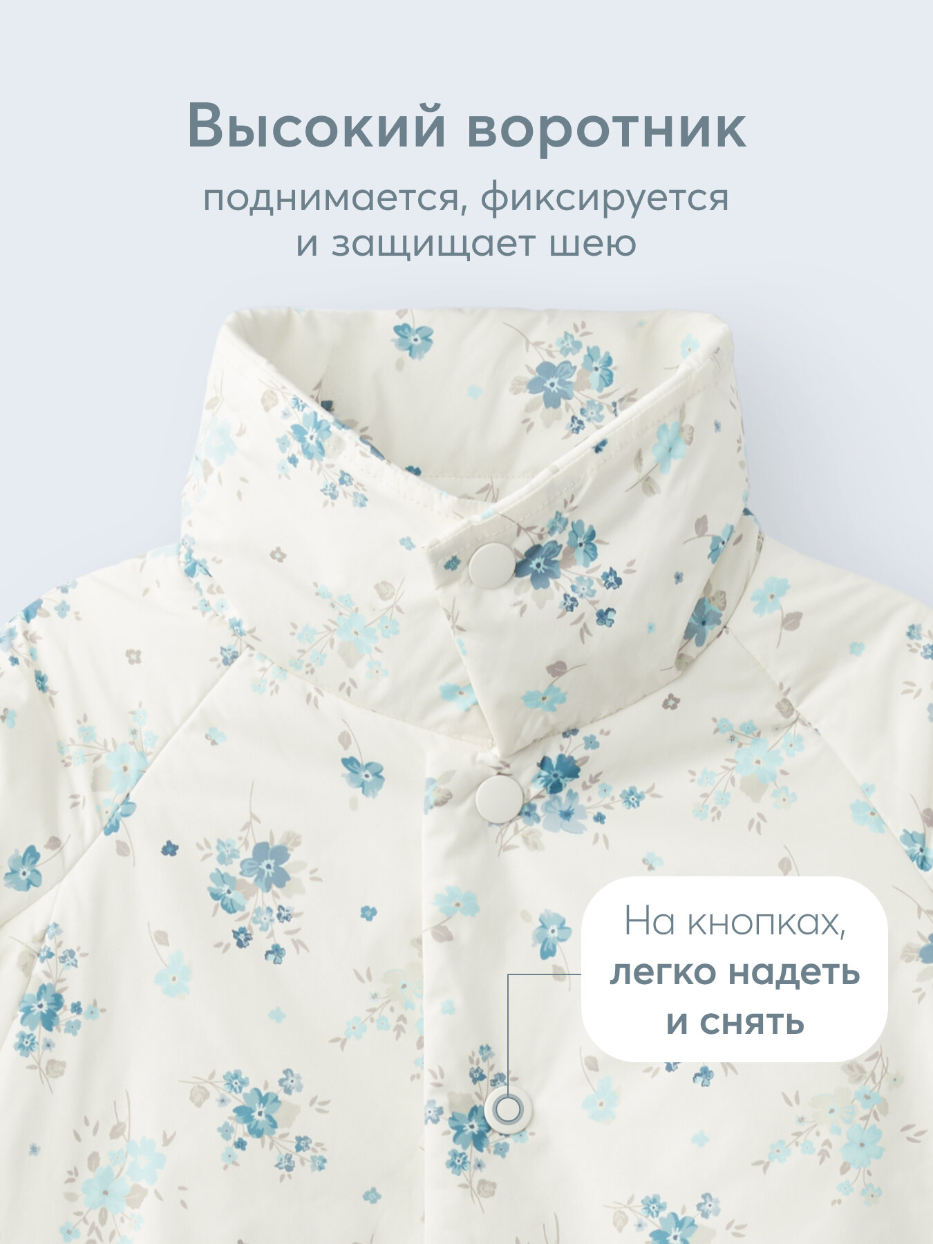 89105-1, Пальто детское Happy Baby утепленное, молочный с цветами, размер 104-110
