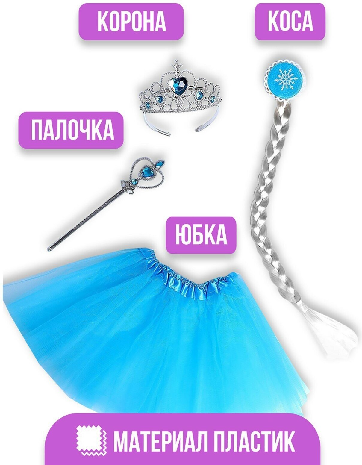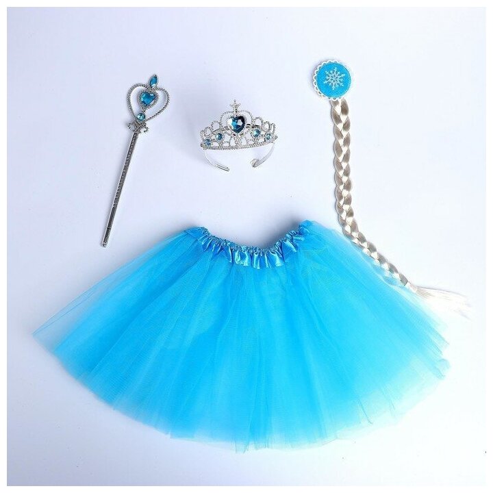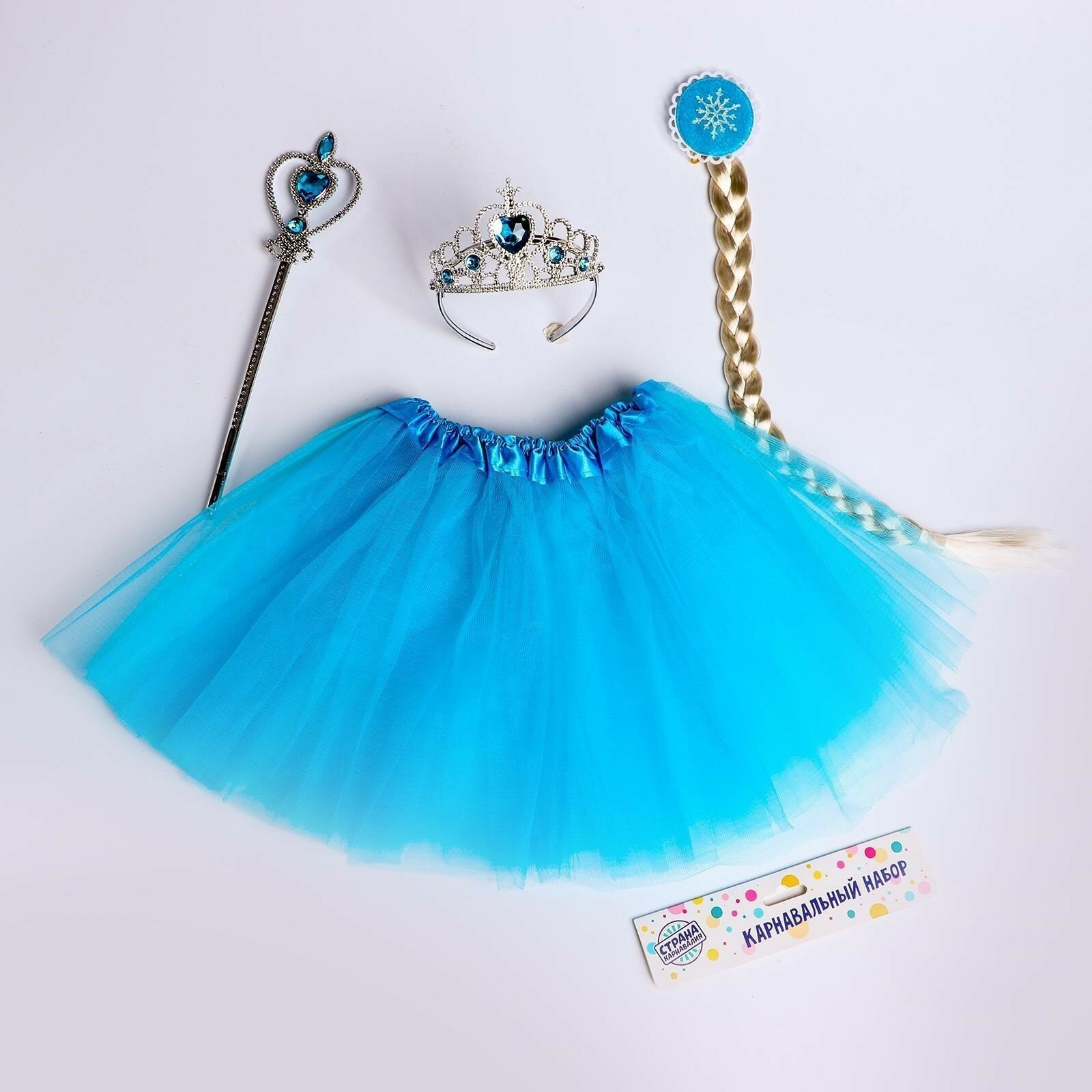 Купить Карнавальный костюм Страна Карнавалия "Снежная принцесса", юбка, корона, палочка, коса