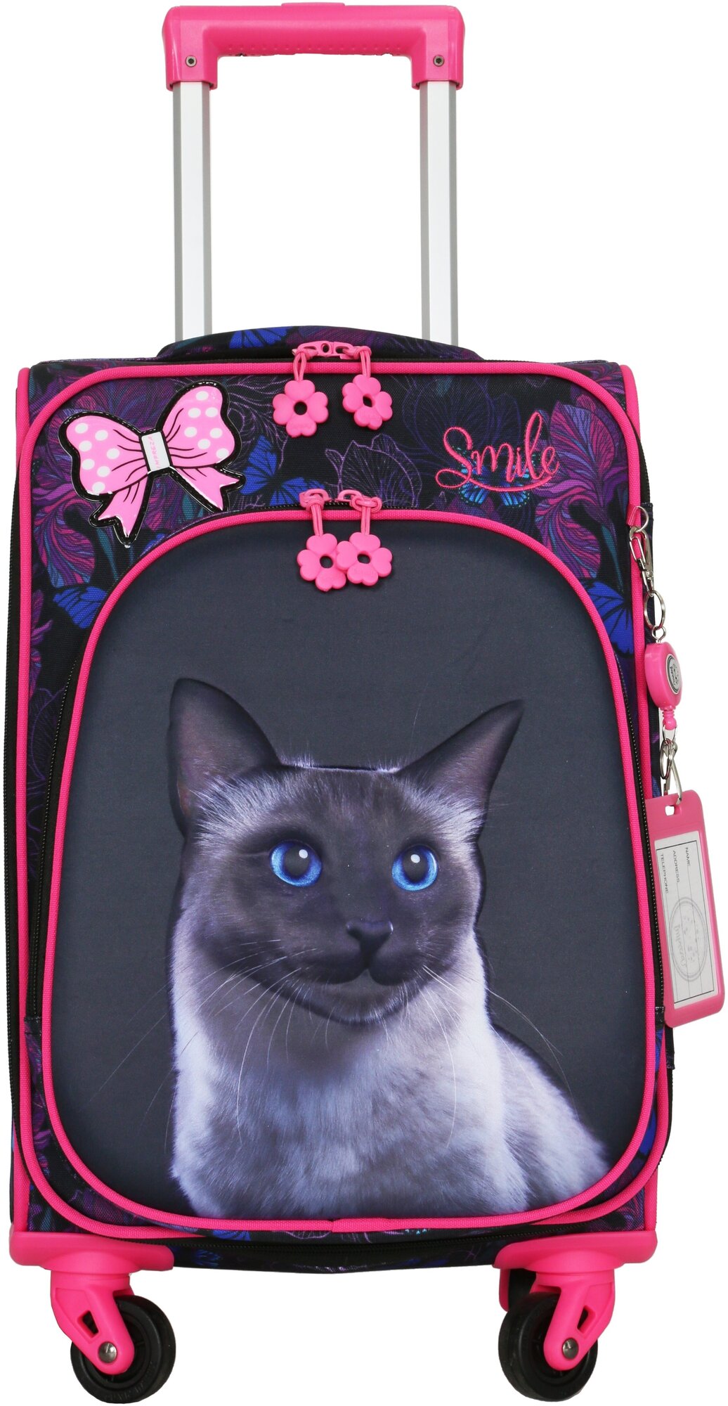 Чемодан дет. Котик 20", 35х20х40, отд. на молнии, 4 колеса, розовый