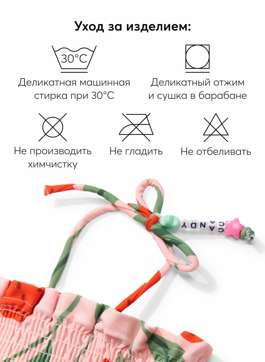 Сохранить50666, Купальник раздельный для девочек Happy Baby, купальник детский, двухпредметный: лиф купальный, верх и плавки с защитой от солнца UPF 50+, солнцезащитный, розовый с клубничками, рост 116-122 интересное: