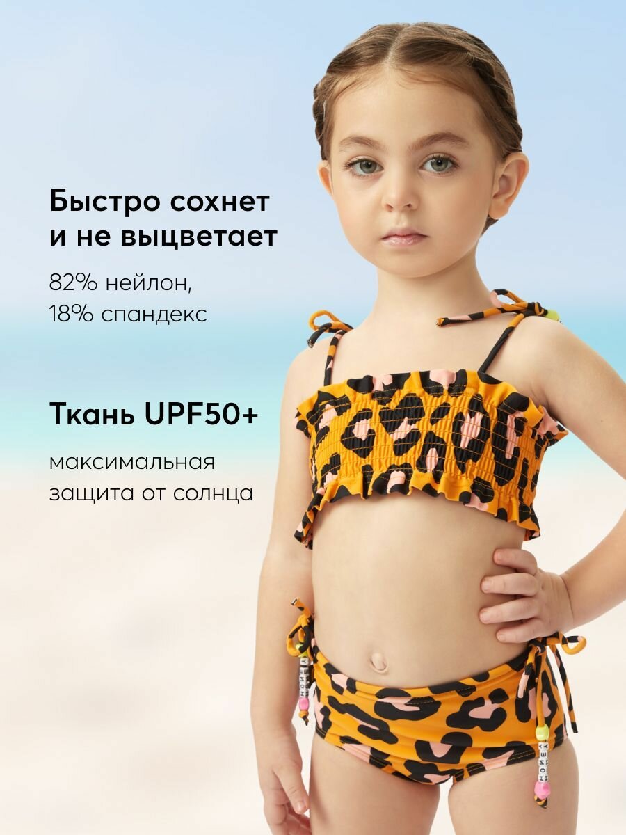 Сохранить50666, Купальник раздельный для девочек Happy Baby, купальник детский, двухпредметный: лиф купальный, верх и плавки с защитой от солнца UPF 50+, солнцезащитный, леопардовый, рост 80-86 интересное: