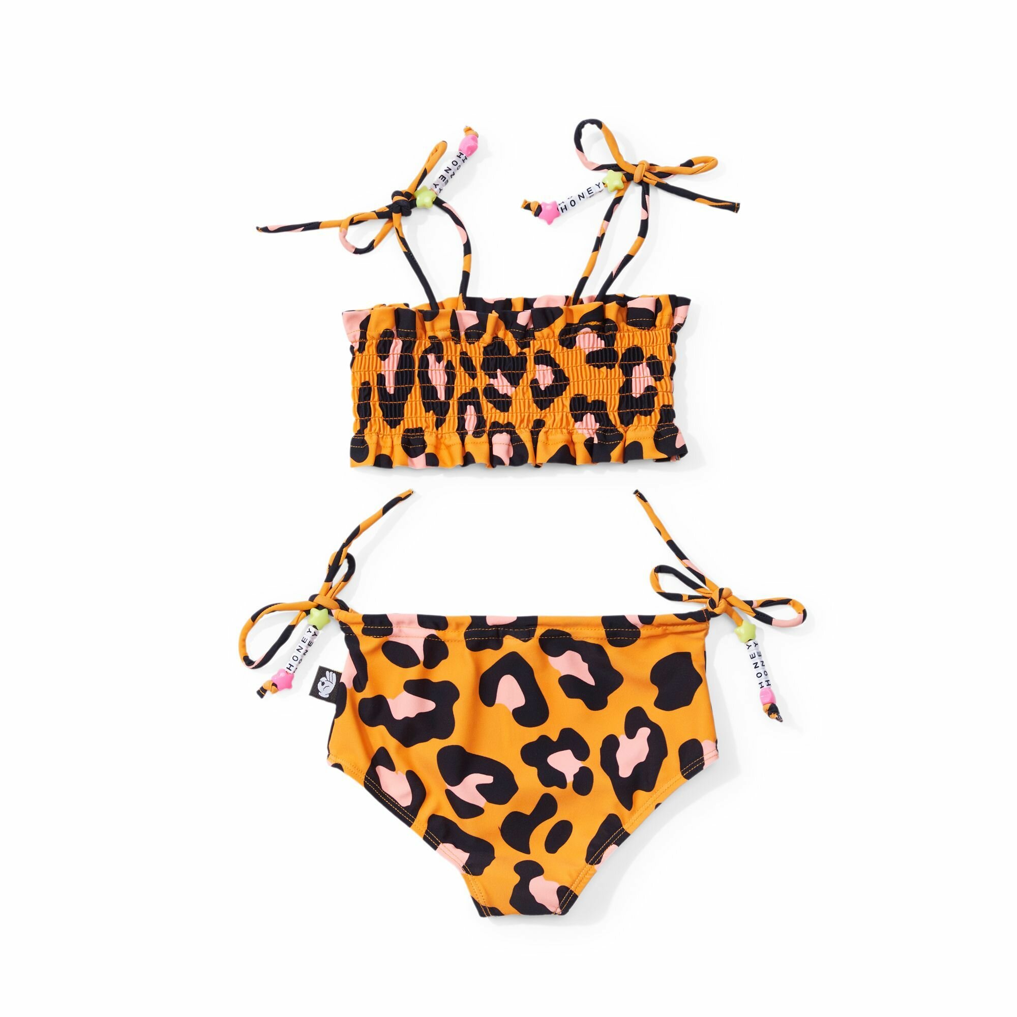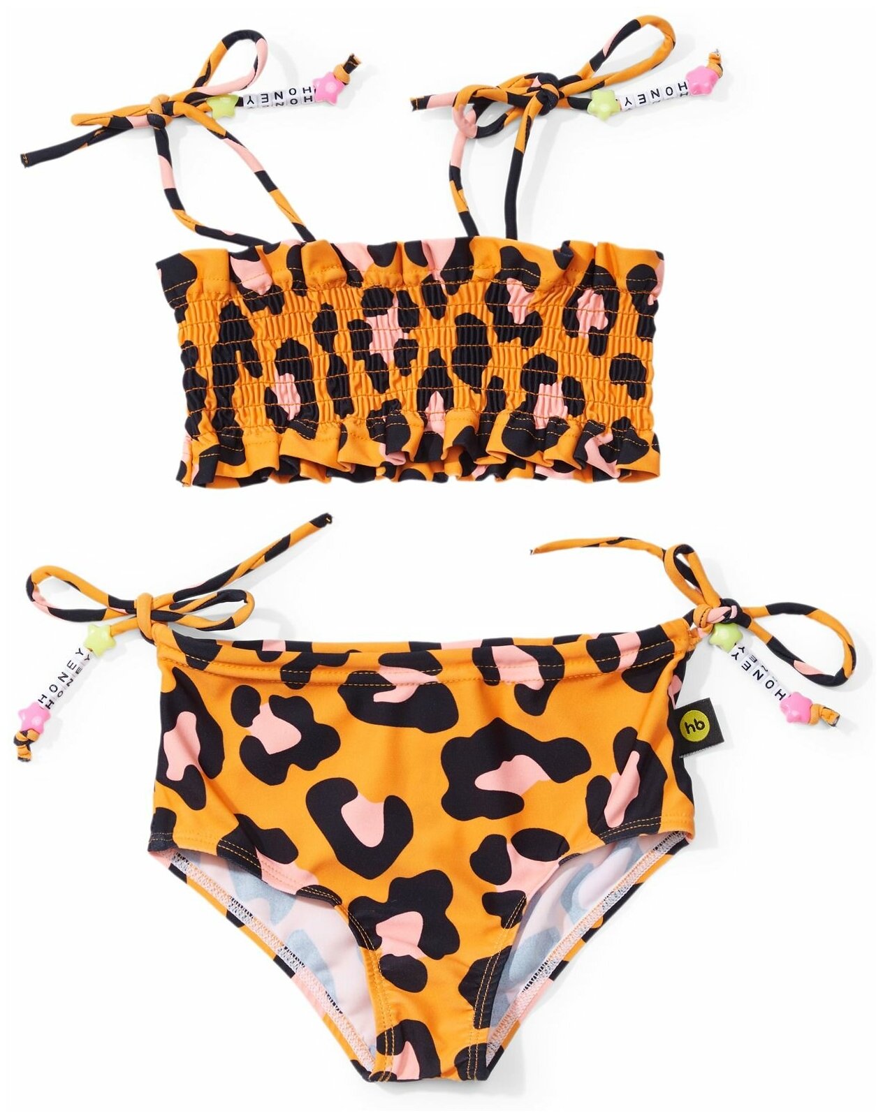 Купить 50666, Купальник раздельный для девочек Happy Baby, купальник детский, двухпредметный: лиф купальный, верх и плавки с защитой от солнца UPF 50+, солнцезащитный, леопардовый, рост 80-86