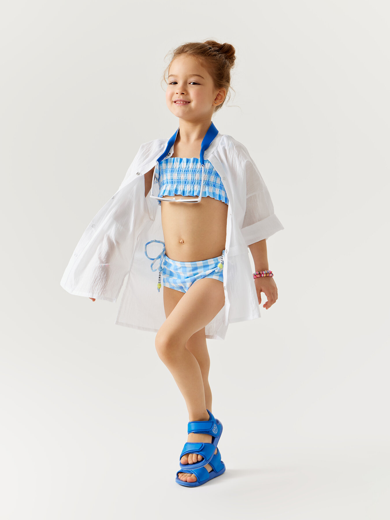 Купить 50666, Купальник раздельный для девочек Happy Baby, купальник детский, двухпредметный: лиф купальный, верх и плавки с защитой от солнца UPF 50+, солнцезащитный, голубая в клетку, рост 80-86