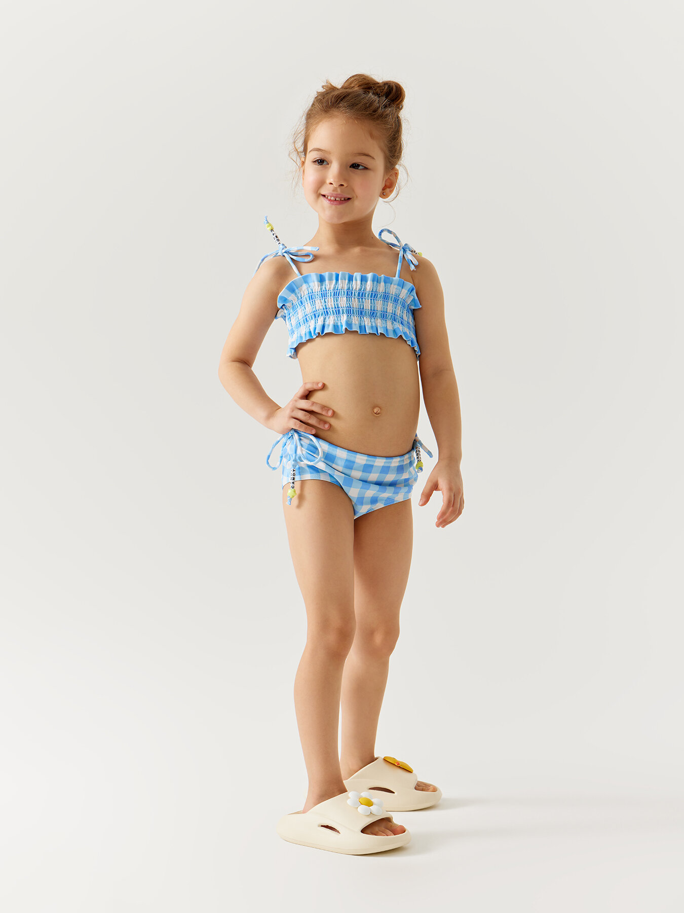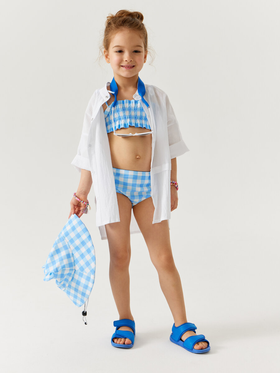 50666, Купальник раздельный для девочек Happy Baby, купальник детский, двухпредметный: лиф купальный, верх и плавки с защитой от солнца UPF 50+, солнцезащитный, голубая в клетку, 92-98