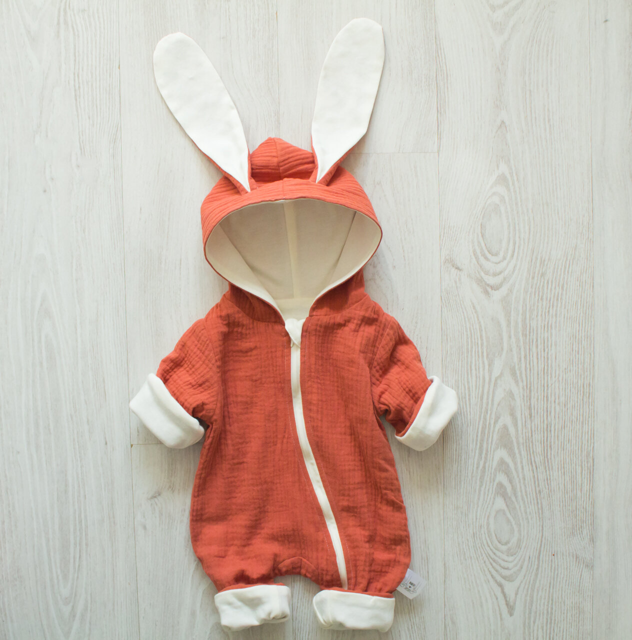 Комбинезон из муслина детский 62 размер (1-3 мес), коричневый, MAMINY ZAPISKY, с капюшоном