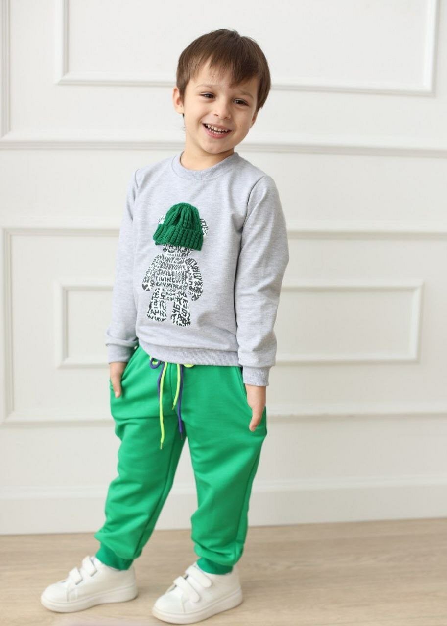 Спортивный костюм для мальчика для девочки MakSiKi серый/зеленый, размер 104.