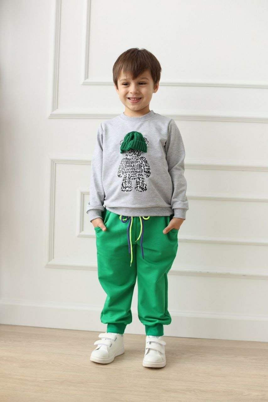 СохранитьСпортивный костюм для мальчиков MakSiKi Серый/Зеленый, размер 122 интересное: