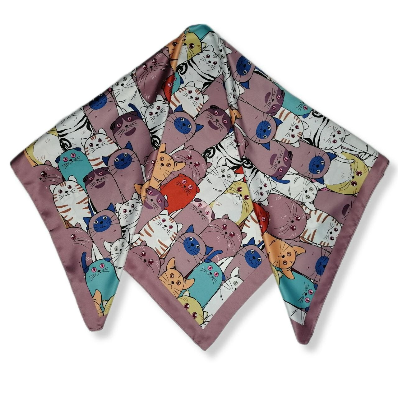 Платок коты, котики атлас / Платок на голову / Шейный платок / Платок на сумку / Косынка на пляж