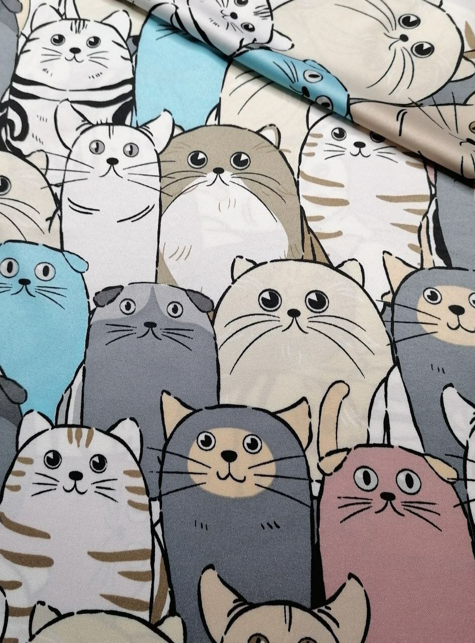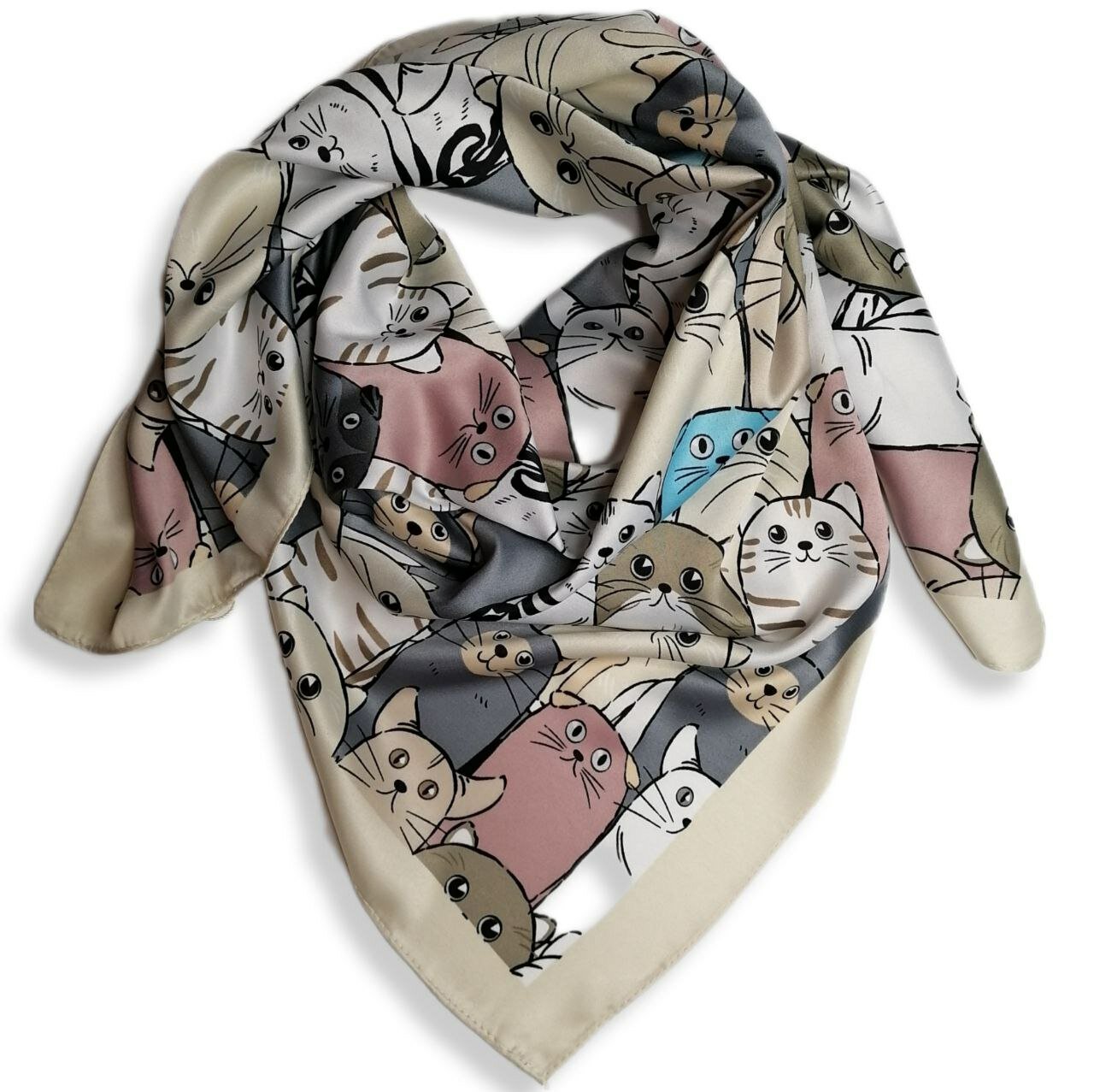 Платок коты, котики атлас / Платок на голову / Шейный платок / Платок на сумку / Косынка на пляж