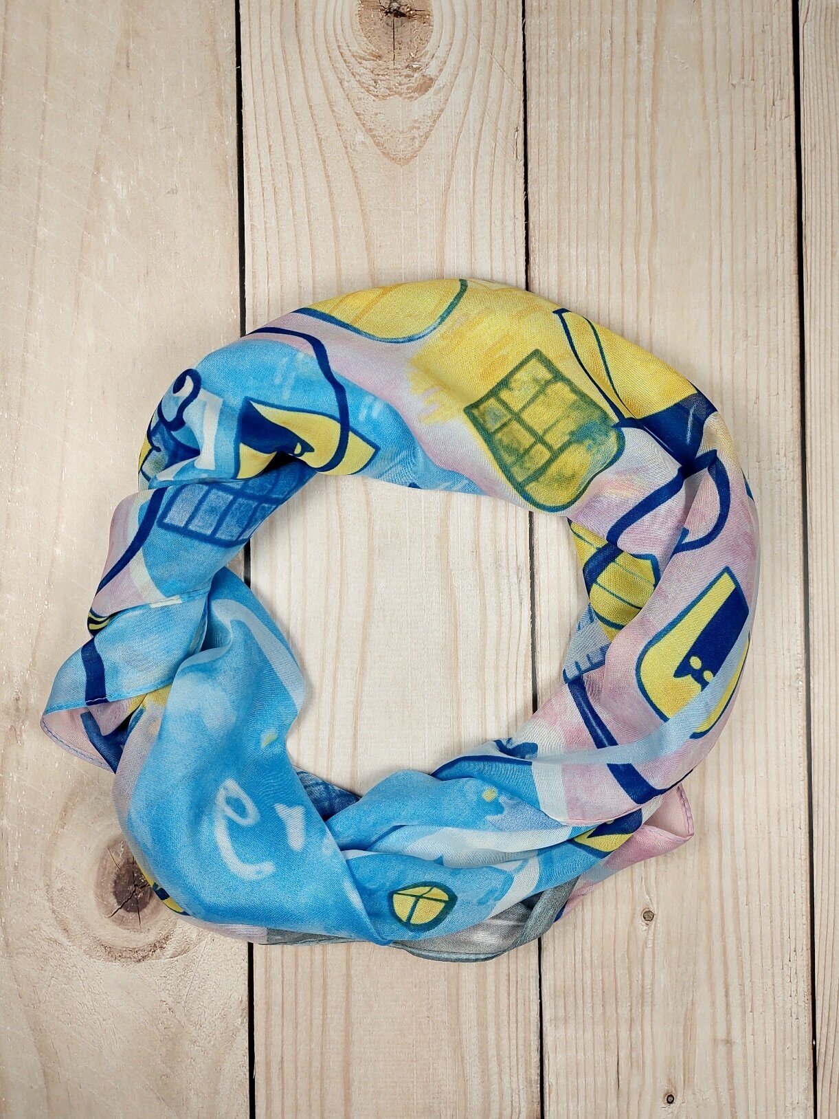 Платок шарф женский Питер 85Х85 см Фонарь голубой
