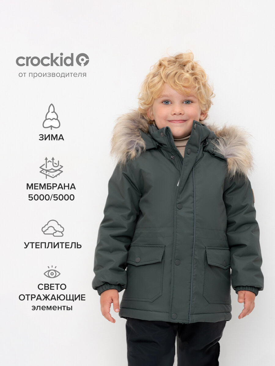 Зимнее пальто с утеплителем для мальчика, Crockid ВК 36096/6 УЗГ (104-122) р 110-116/60/54