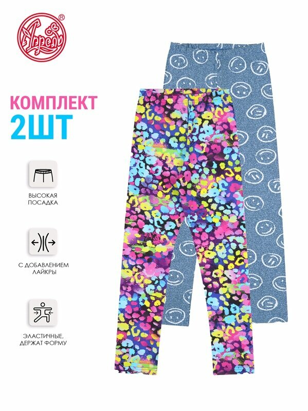 Лосины для девочки детские набор 2 шт. хлопок с лайкрой Апрель 2ДРЛ5641803н/385/*/5392/*/*/*/* розовый,синий,мультиколор 62-122