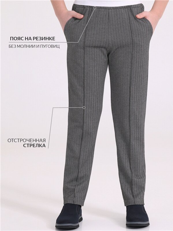 Купить Брюки школьные на резинке трикотаж костюмный жаккард Апрель 1ПББ3460176/982/*/3189/*/*/*/*/1 черный,серый 84-158
