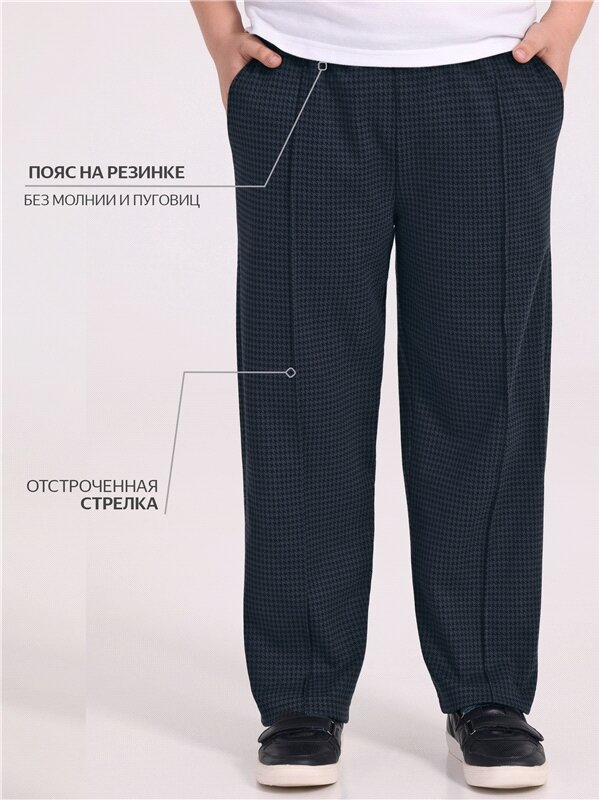 Брюки для мальчика школьные на резинке трикотаж костюмный жаккард Апрель 1ПББ837176/982/*/4816/*/*/*/* синий,черный 76-146
