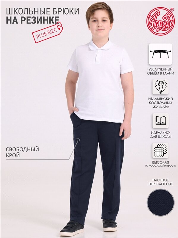 Брюки школьные для мальчика на резинке трикотаж костюмный жаккард Апрель 1ПББ3460176/982/*/5203/*/*/*/* синий 84-158