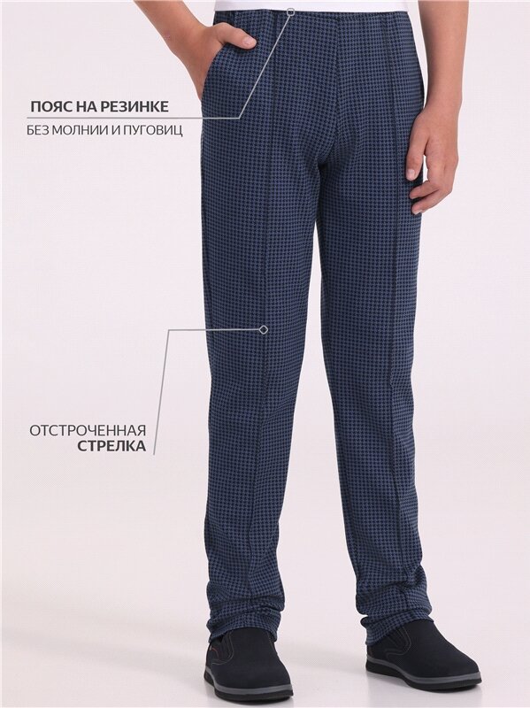 Брюки школьные для мальчика на резинке трикотаж костюмный жаккард Апрель 1ПББ3460176/982/*/5203/*/*/*/* синий 84-158