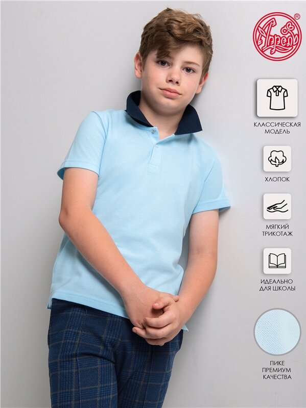 Купить Футболка поло школьная форма хлопок Апрель 1ПДПК4143090/1386/2357/*/*/*/*/* голубой,синий 62-122