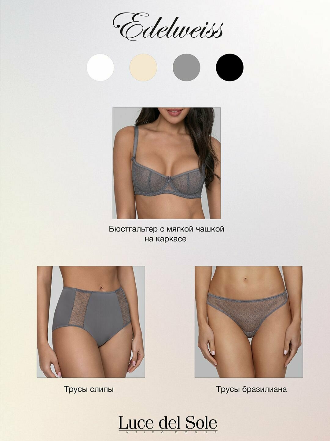 Ниже Вы можете прочитать отзывы на Бюстгальтер кружевной балконет на косточках с мякгой чашкой Luce del Sole 0601LS-серый-80D, ознакомится с подробными характеристиками, посмотреть интересные обзоры и фотографии на Бюстгальтер кружевной балконет на косточках с мякгой чашкой Luce del Sole 0601LS-серый-80D.