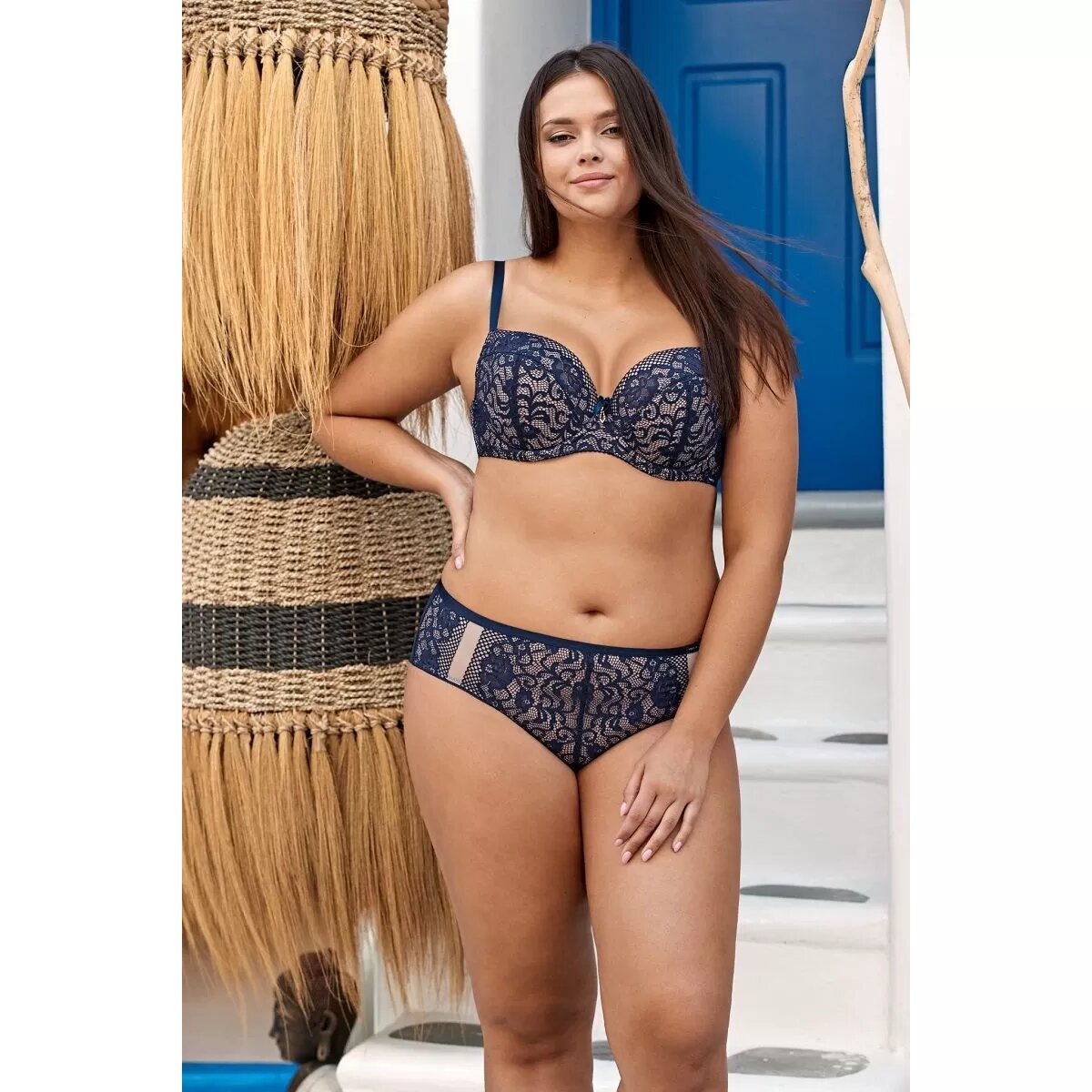 Бюстгальтер на косточках Eunika с пуш-ап вкладышами, Nipplex, 65F, темно-синий