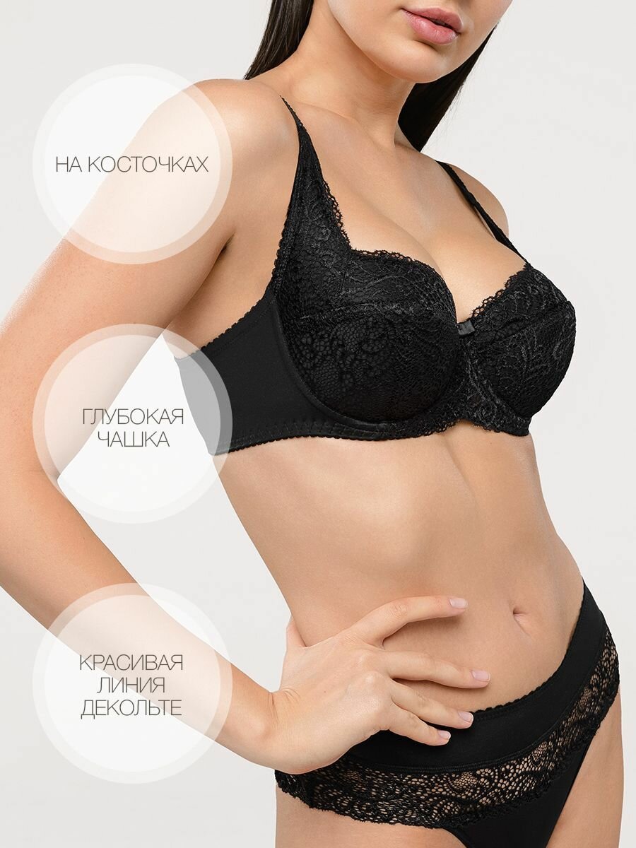 СохранитьБюстгальтер MILADY балконет анжелика лифчик кружевной женское с косточками хлопок без пушап глубокая дублированная чашка для больших размеров груди черный 95A интересное: