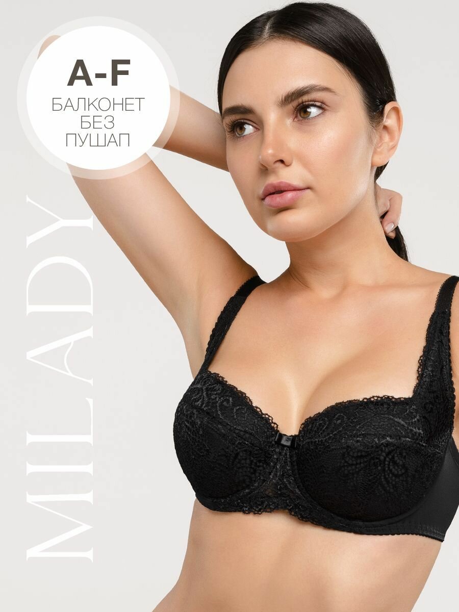 Купить Бюстгальтер MILADY балконет анжелика лифчик кружевной женское с косточками хлопок без пушап глубокая дублированная чашка для больших размеров груди черный 95A