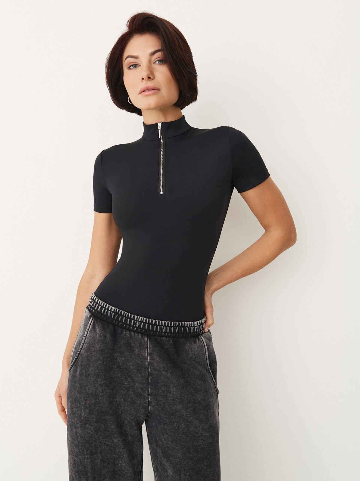 Боди с высоким вырезом бедра и длинным рукавом твое, арт. 102862, черный, S