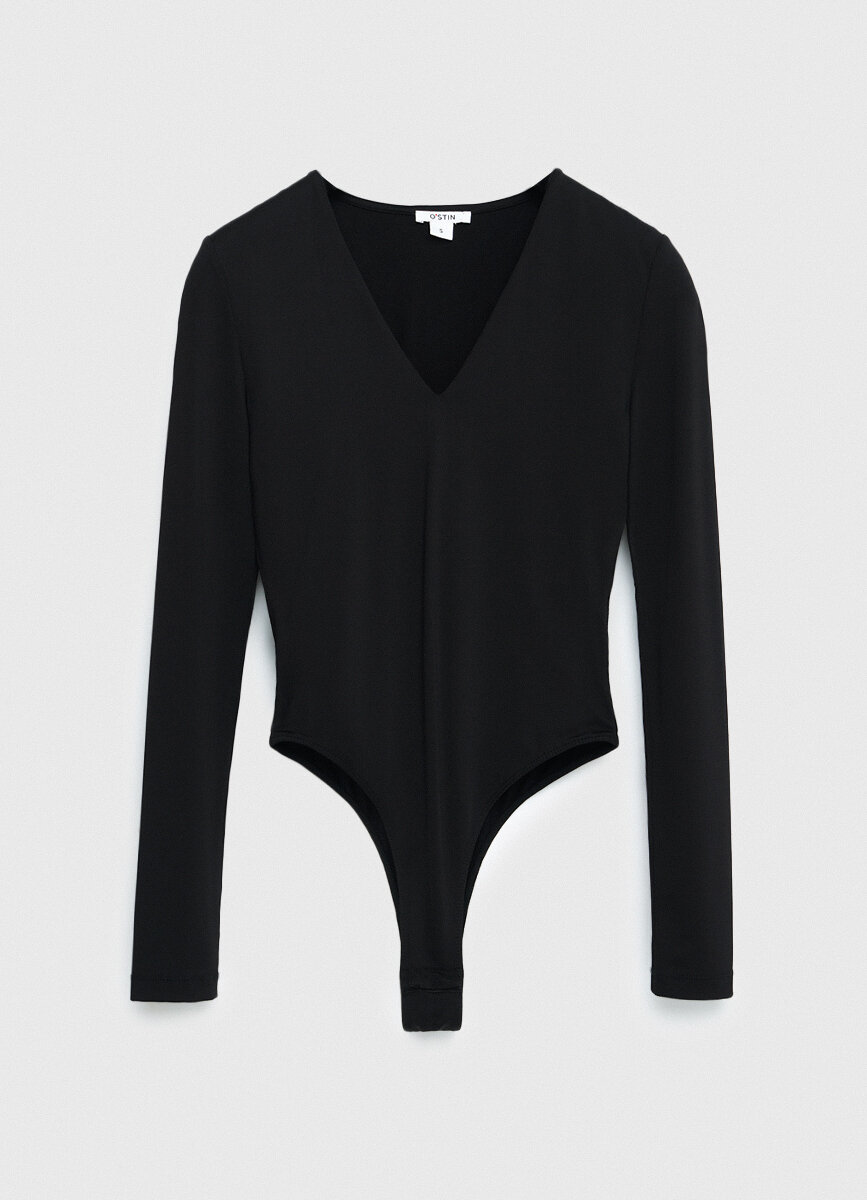Боди с высоким вырезом бедра и длинным рукавом твое, арт. 102862, черный, S