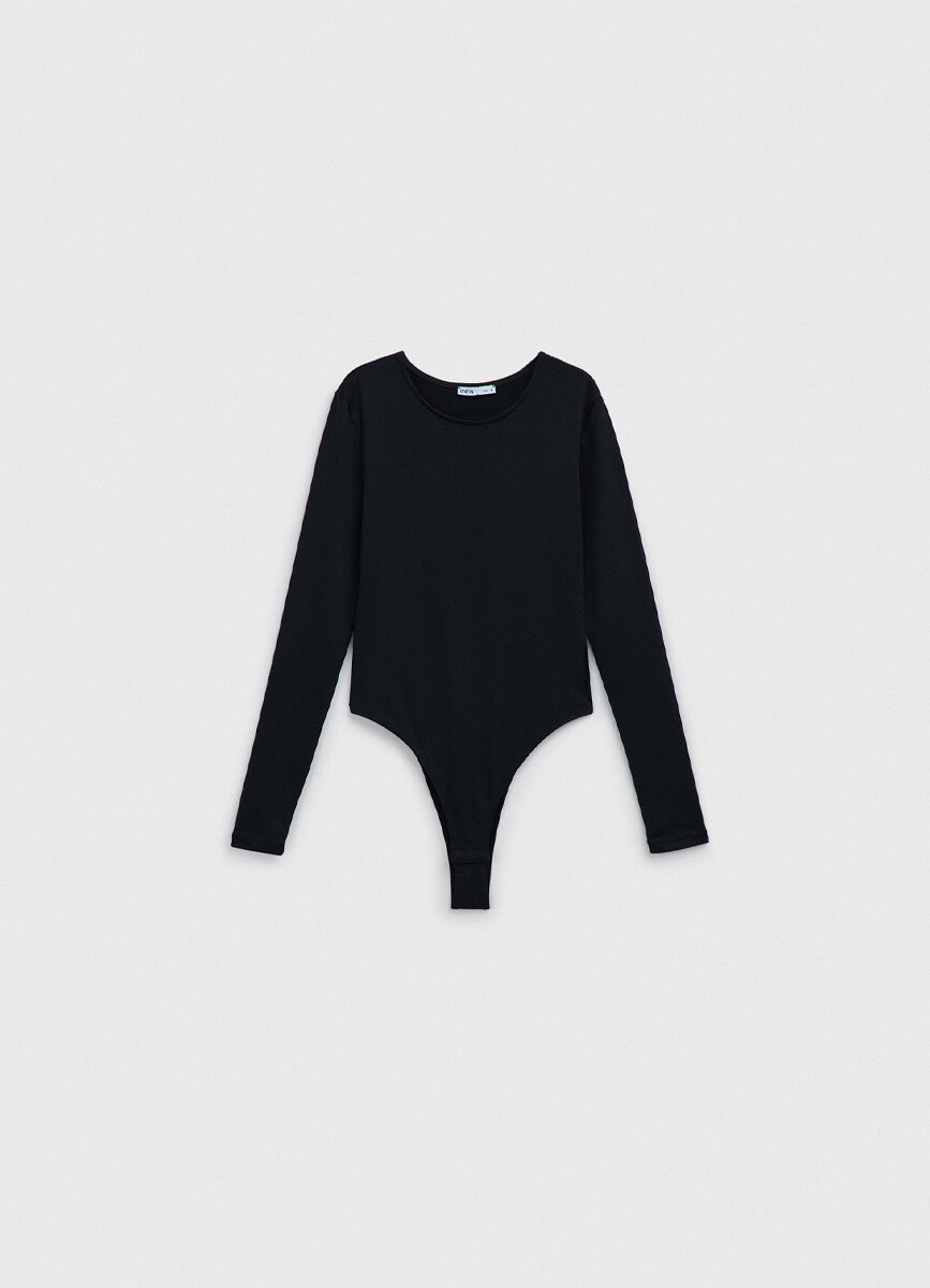 Боди с высоким вырезом бедра и длинным рукавом твое, арт. 102862, черный, S